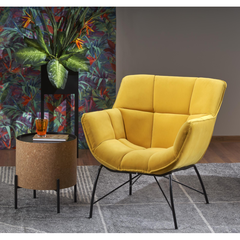 wymiary: 74/73/78/40 cm, materiał: tkanina velvet / stal malowana proszkowo, kolor: żółty - HLR SX80