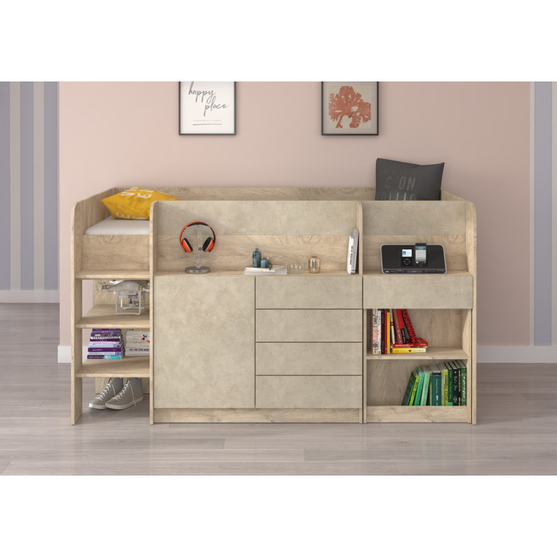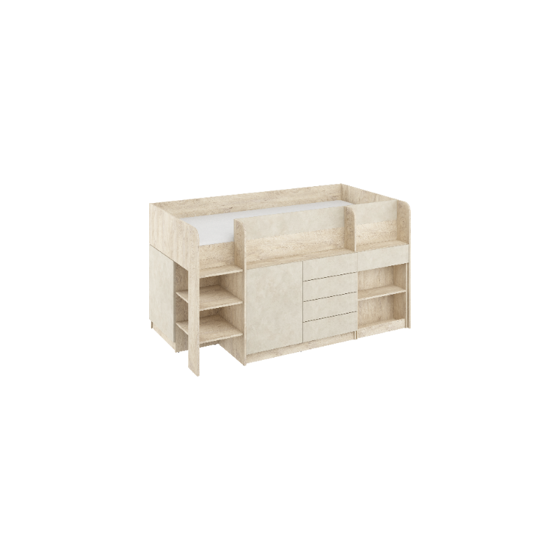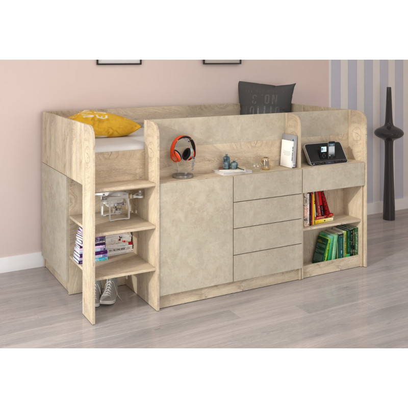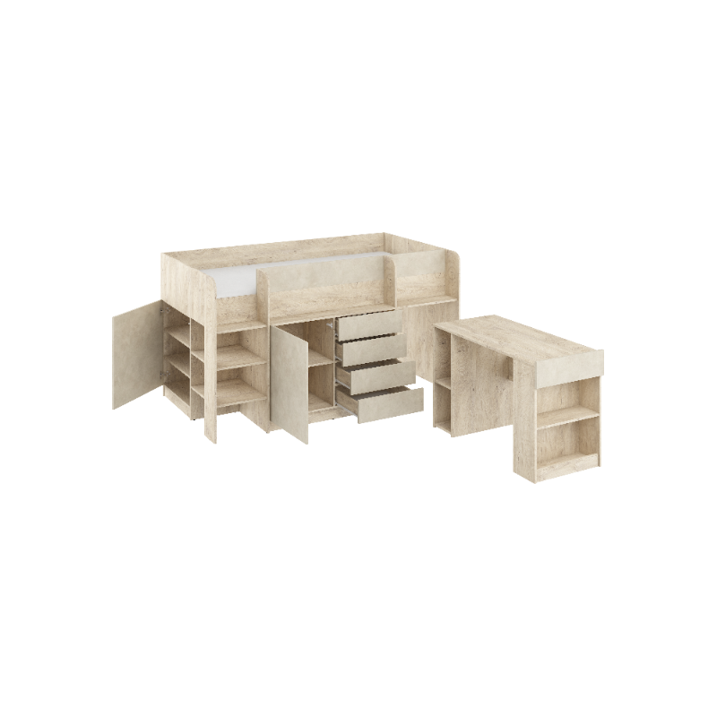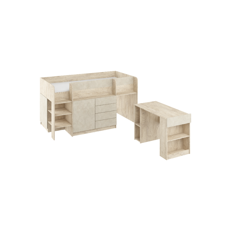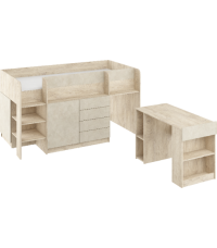 Łóżko piętrowe z biurkiem Smile lewe Dąb endgrain/Granada migdał