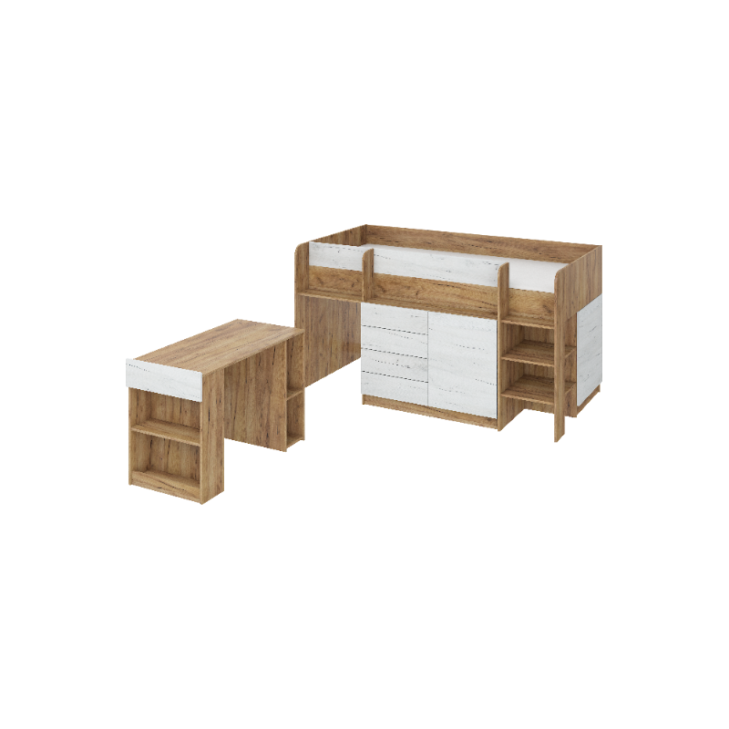 Łóżko piętrowe z biurkiem Smile prawe Craft złoty/Craft biały