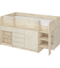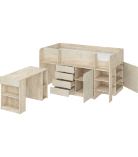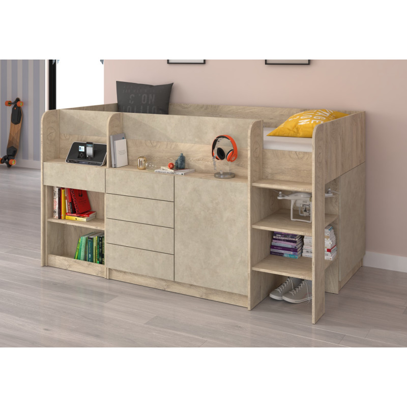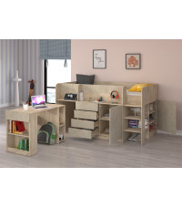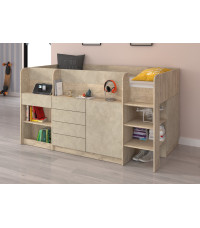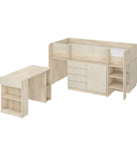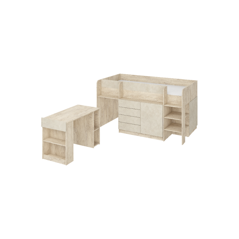 Łóżko piętrowe z biurkiem Smile prawe Dąb endgrain/Granada migdał