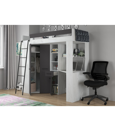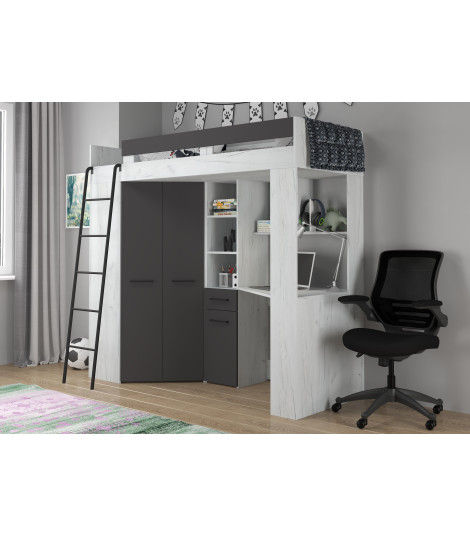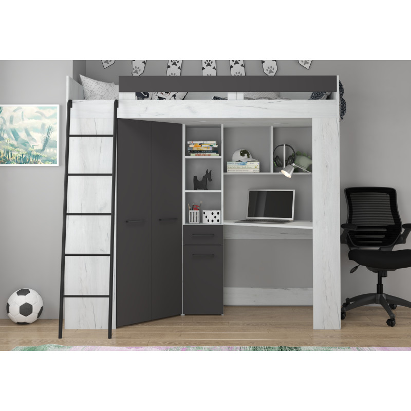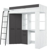 Łóżko piętrowe Floor L z biurkiem i szafą Craft biały/Grafit