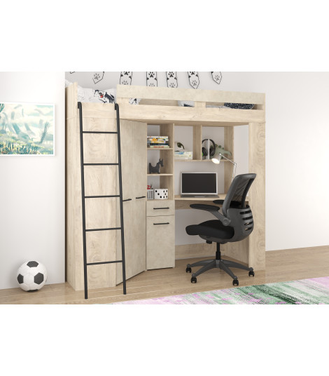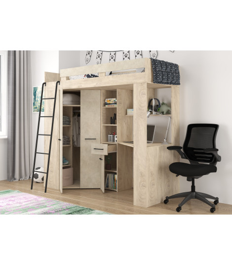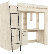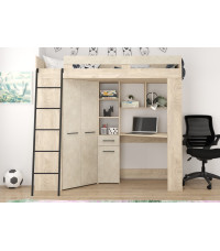Łóżko piętrowe Floor L z biurkiem i szafą Dąb Endgrain/Granada migdał
