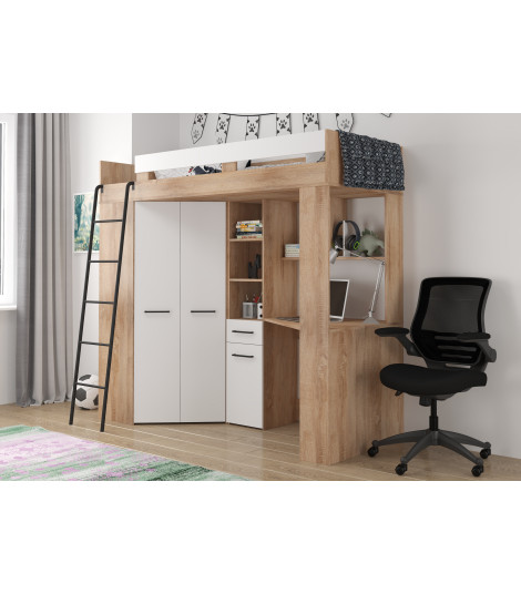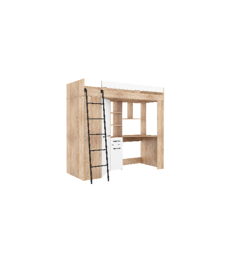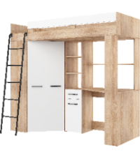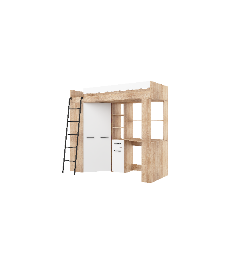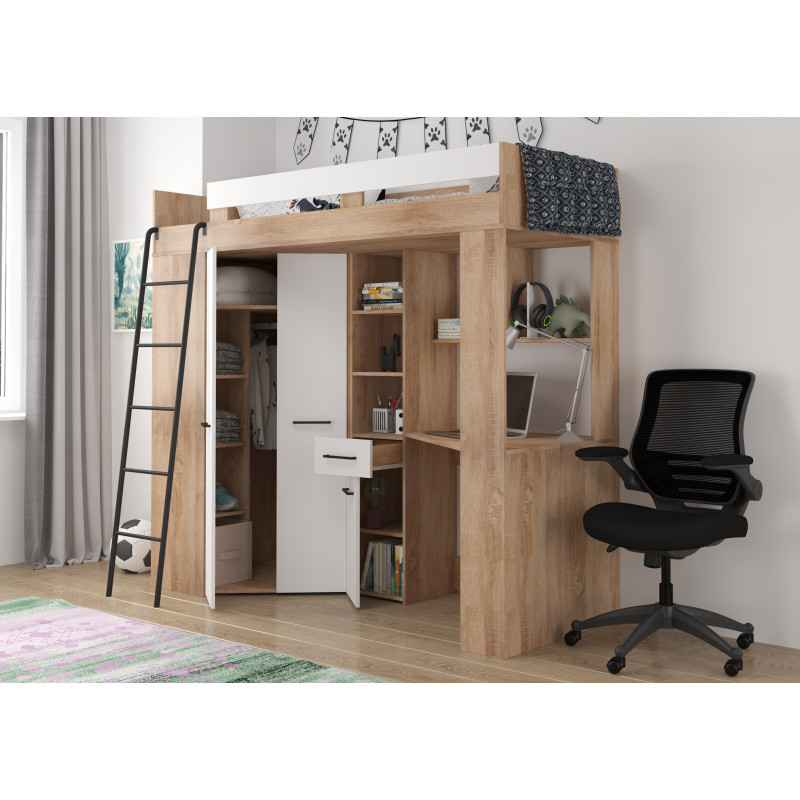 Łóżko piętrowe Floor L z biurkiem i szafą Sonoma jasna/Biały