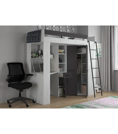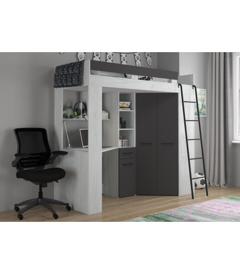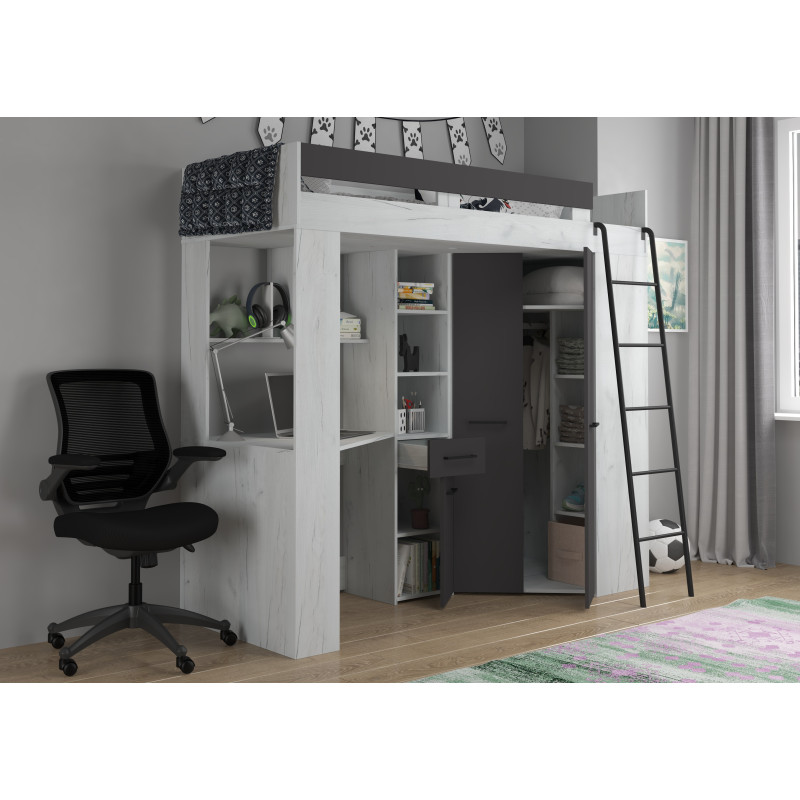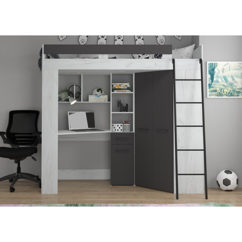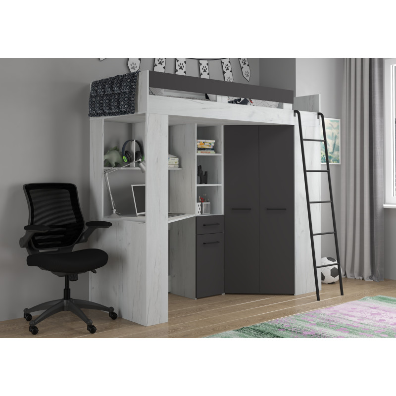 Łóżko piętrowe Floor P z biurkiem i szafą Craft biały/Grafit