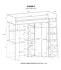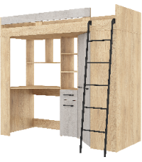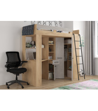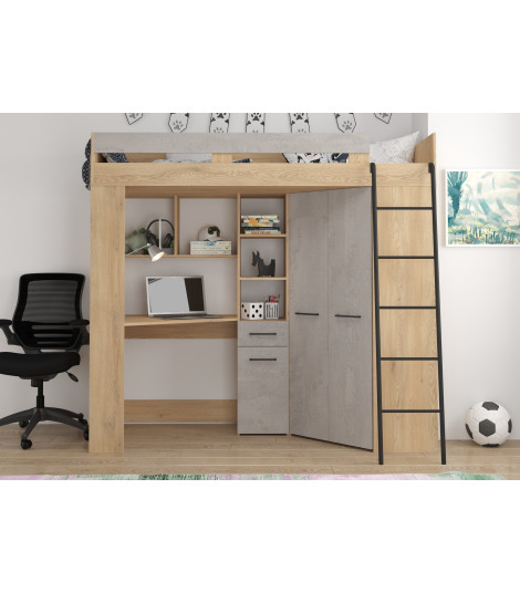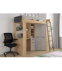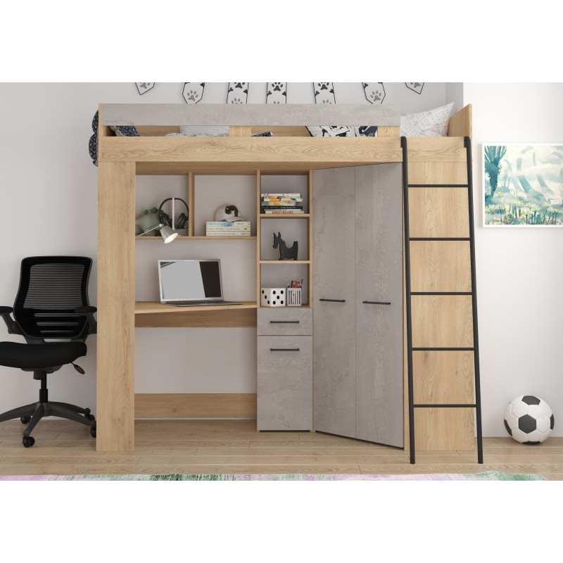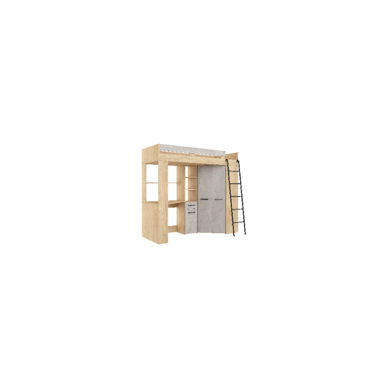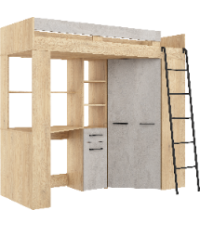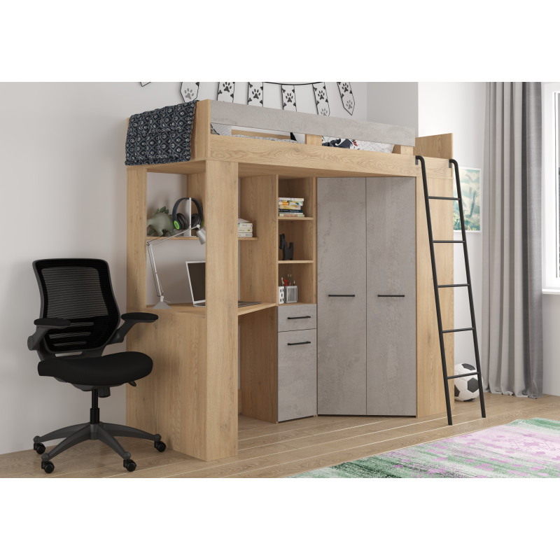 Łóżko piętrowe Floor P z biurkiem i szafą Dąb Cremona/Beton szary