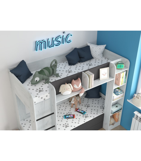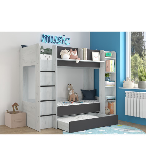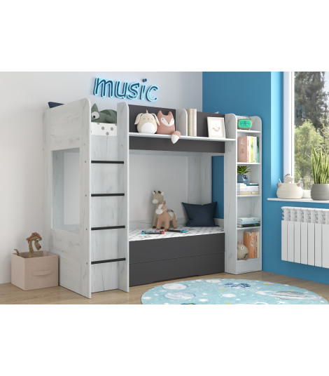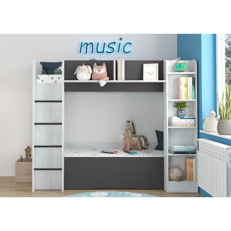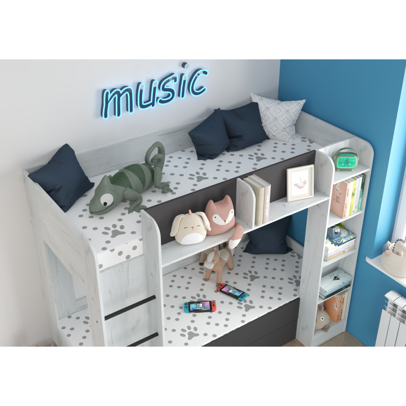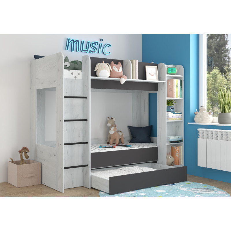 Łóżko piętrowe Everest L z szufladą Craft biały/Grafit