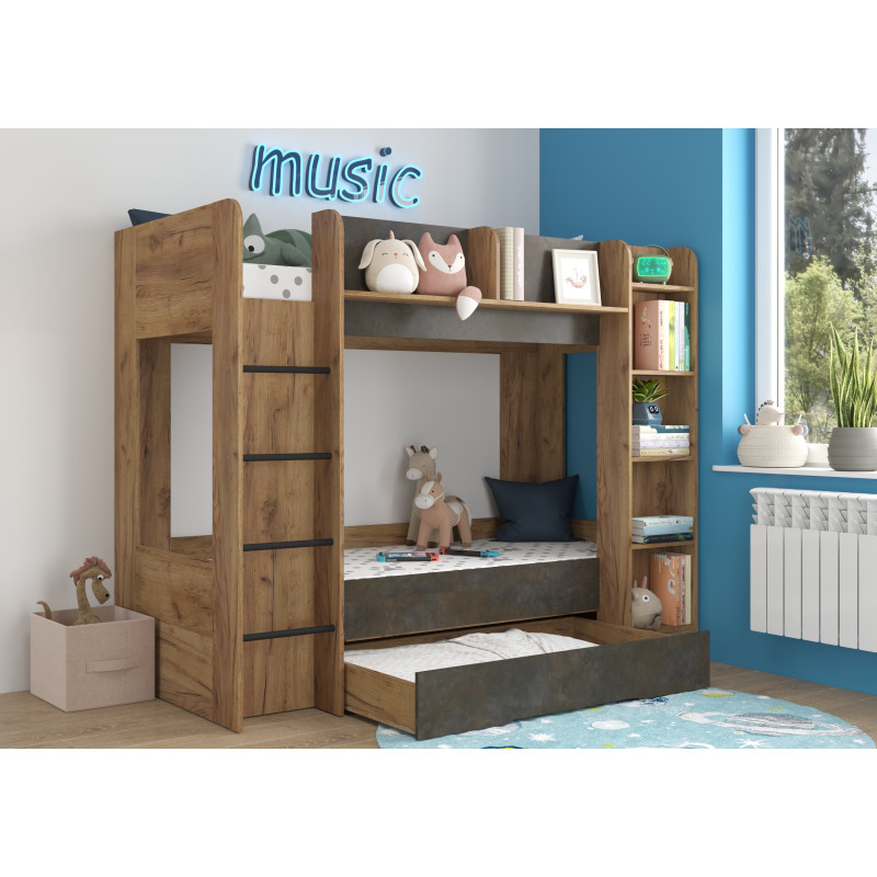 Łóżko piętrowe Everest L z szufladą Craft złoty/Granada brąz