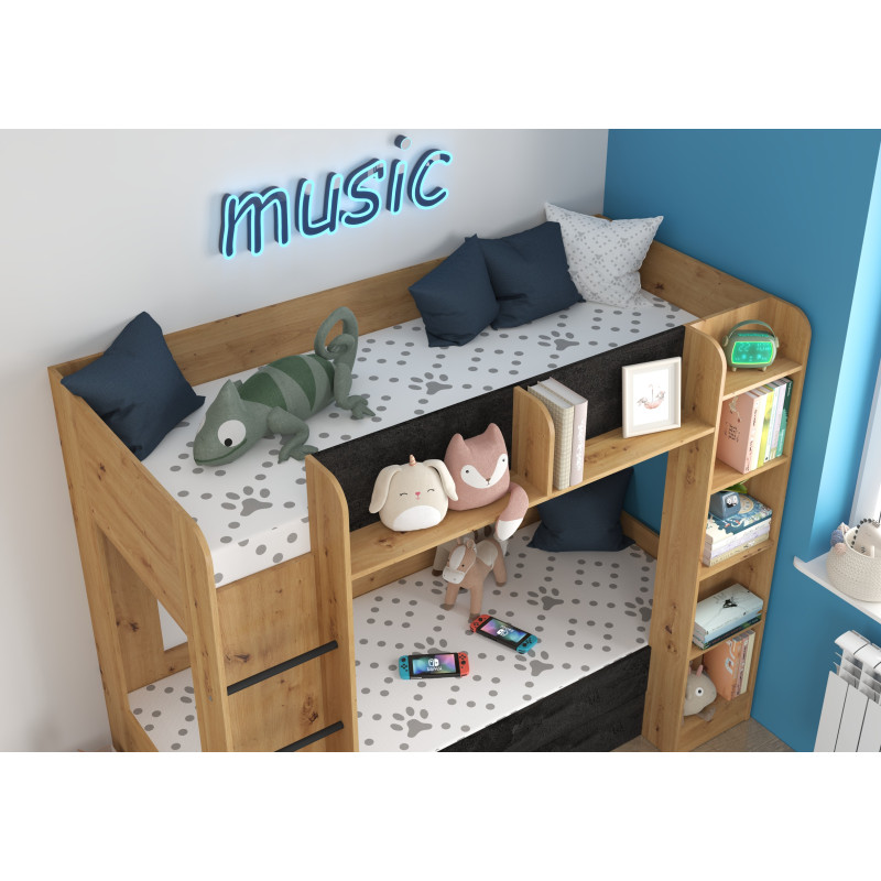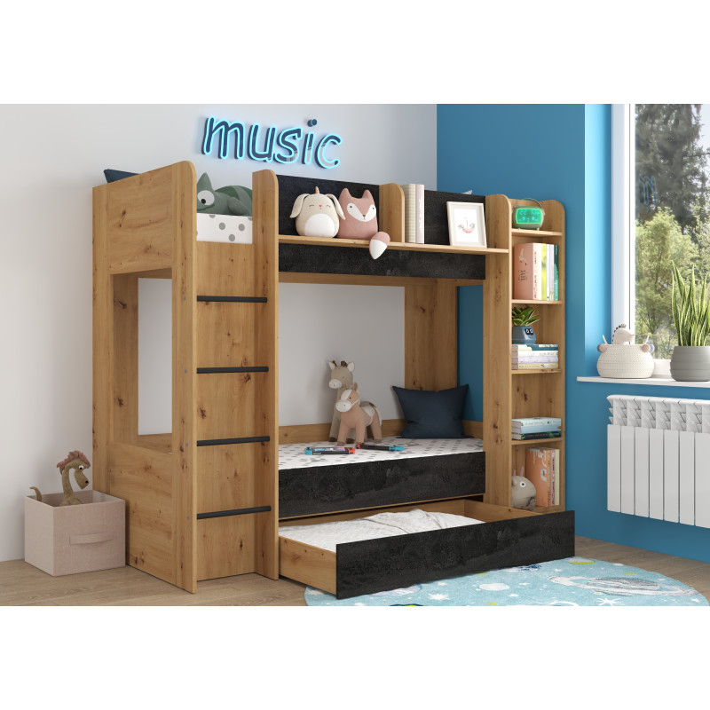 Łóżko piętrowe Everest L z szufladą Dąb Artisan/Beton czarny