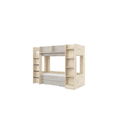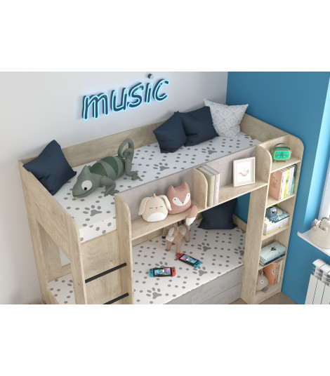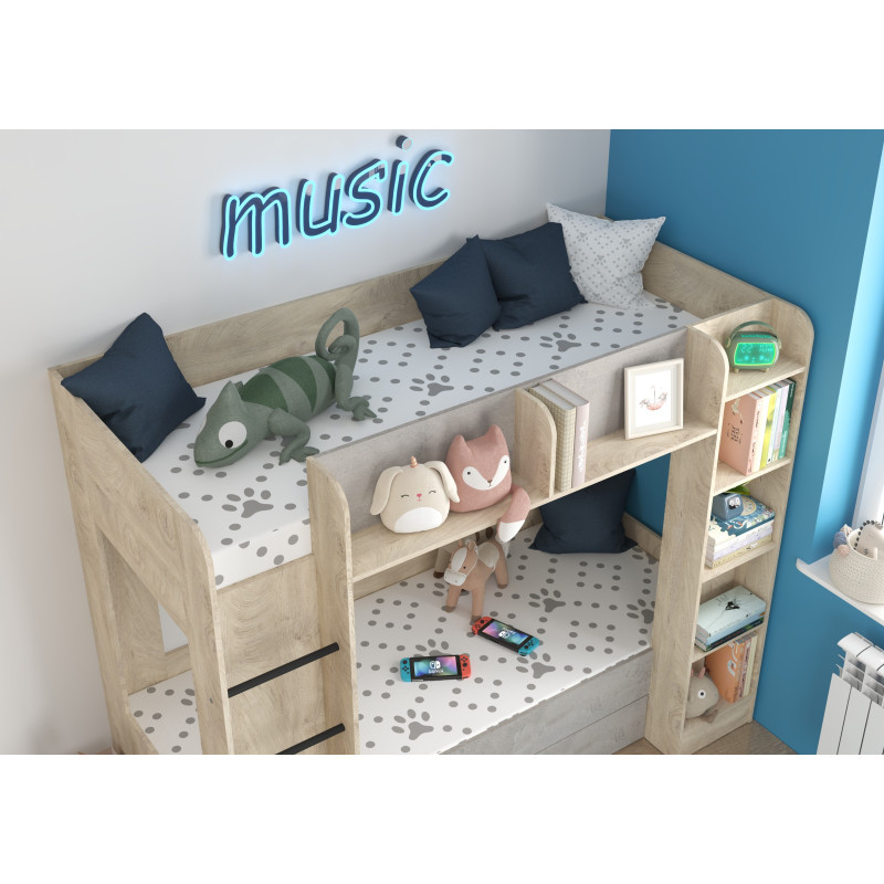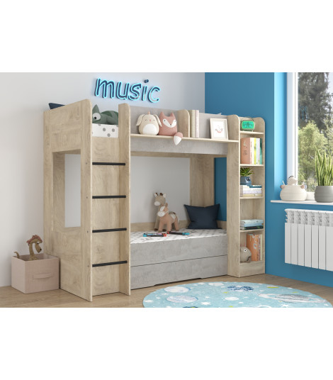 Łóżko piętrowe Everest L z szufladą Dąb Endgrain/Beton szary