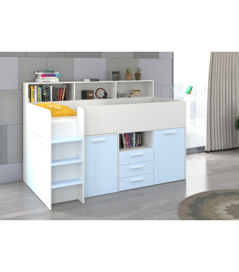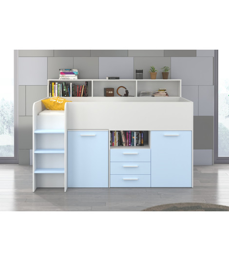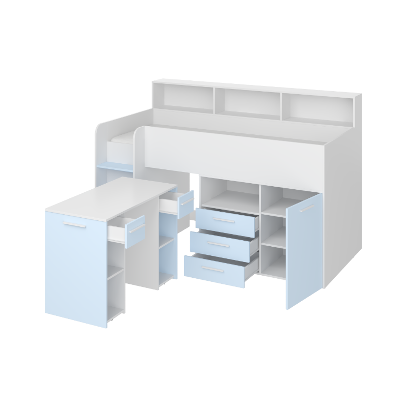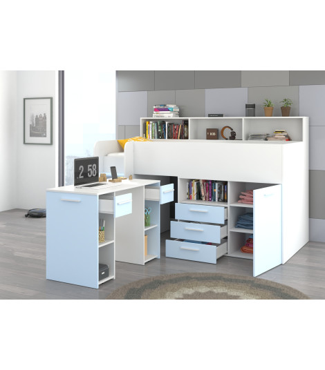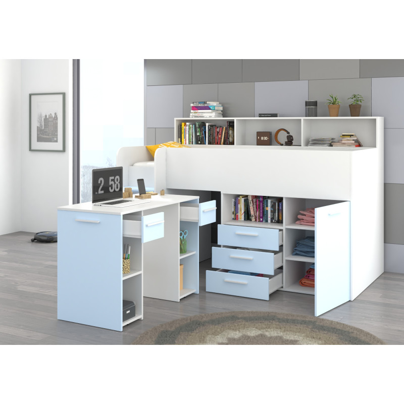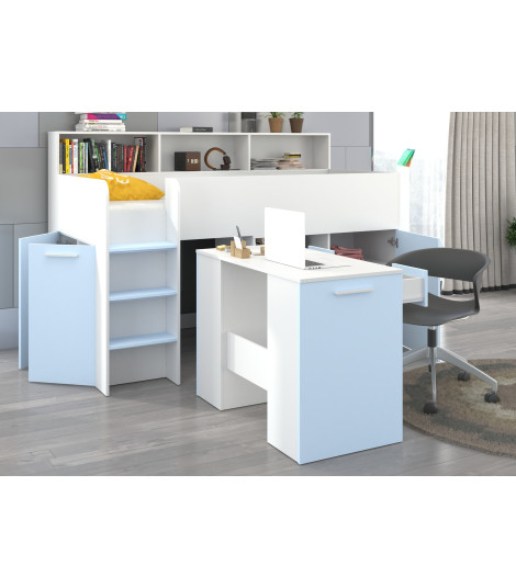 Łóżko z biurkiem Neo L i szufladami Biały/Błękit