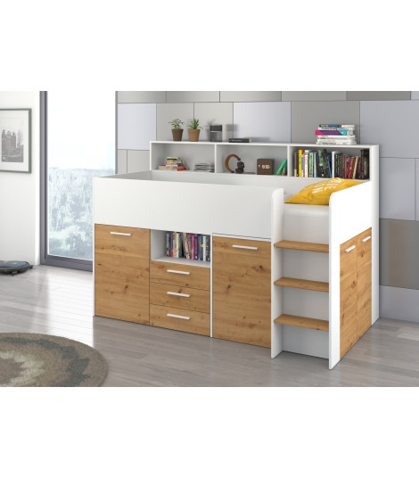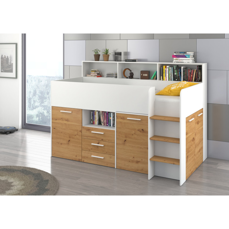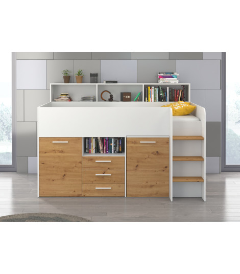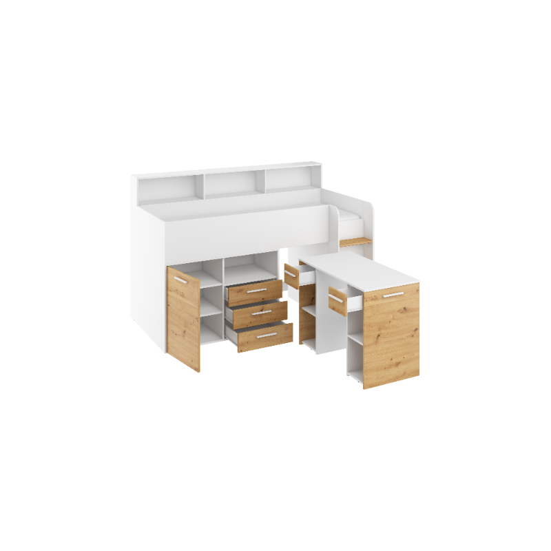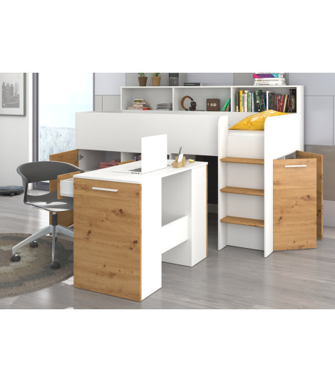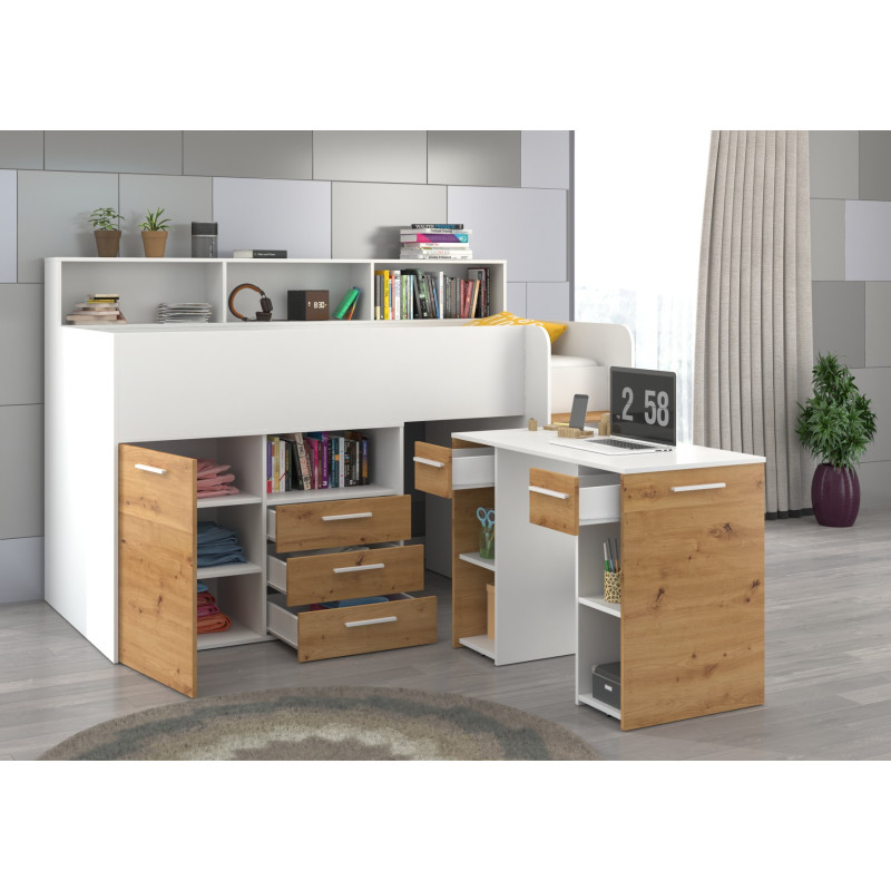 Łóżko z biurkiem Neo P i szufladami Biały/Dąb Artisan