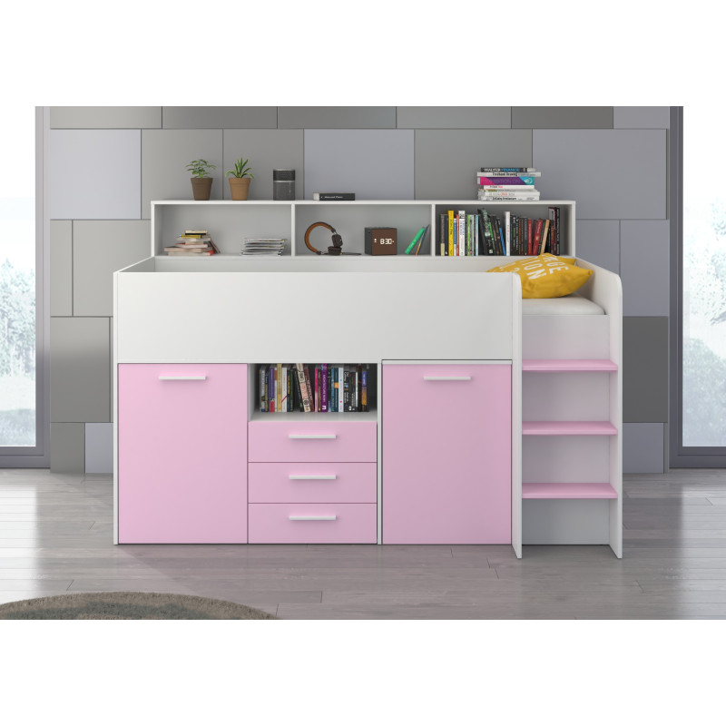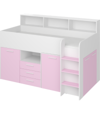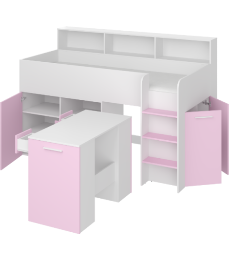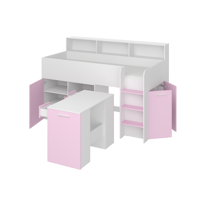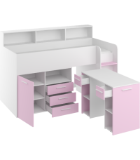 Łóżko z biurkiem Neo P i szufladami Biały/Lawenda