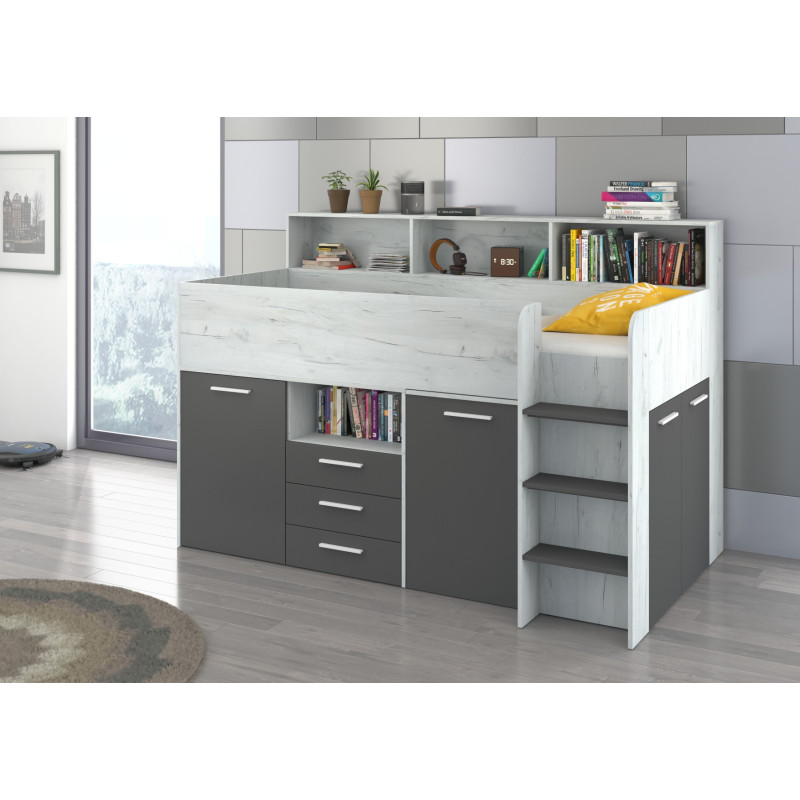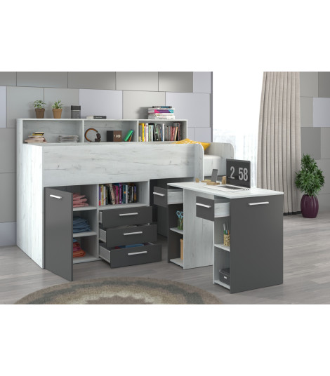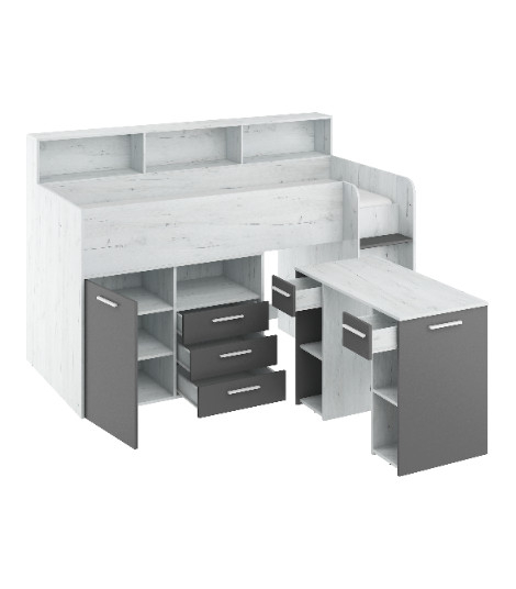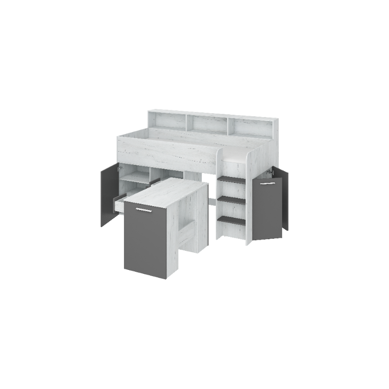 Łóżko z biurkiem Neo P i szufladami Craft biały/Grafit
