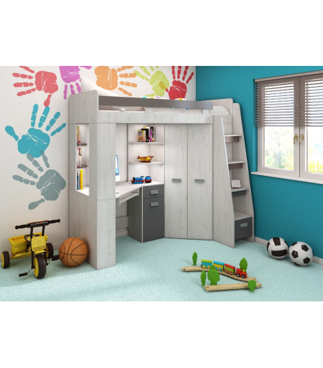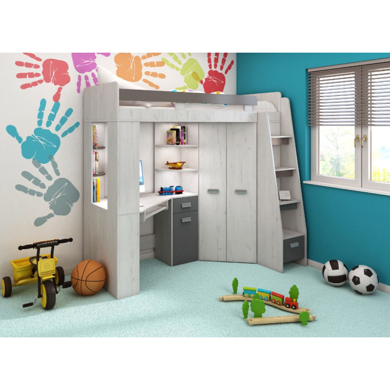 Łóżko piętrowe Antresola P z biurkiem i szafą Craft biały/Grafit