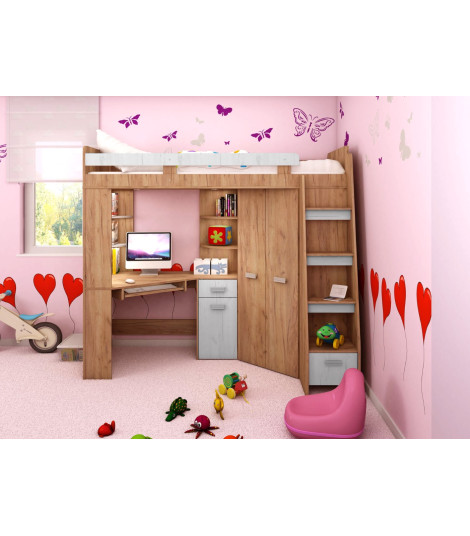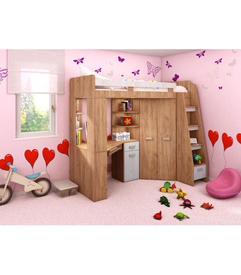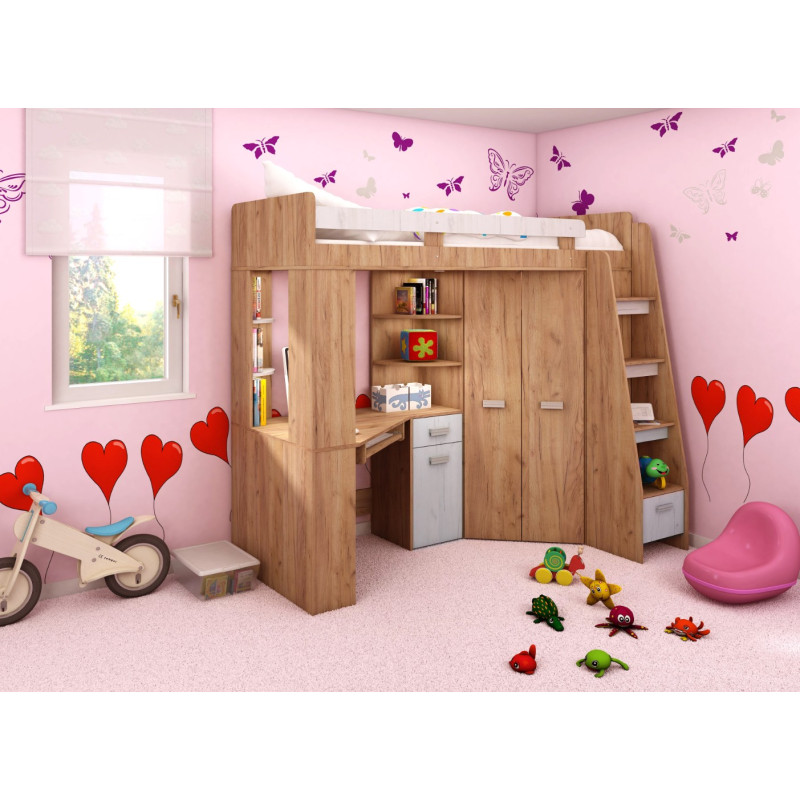 Łóżko piętrowe Antresola P z biurkiem i szafą Craft złoty/Craft biały