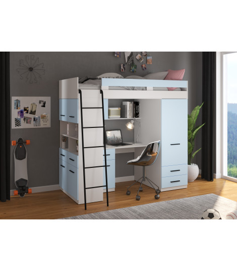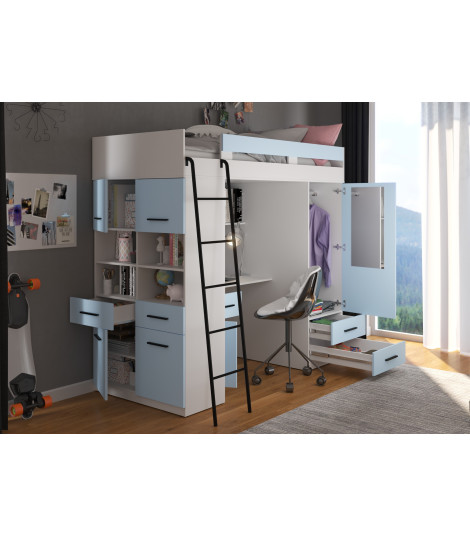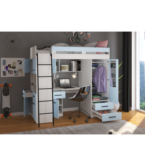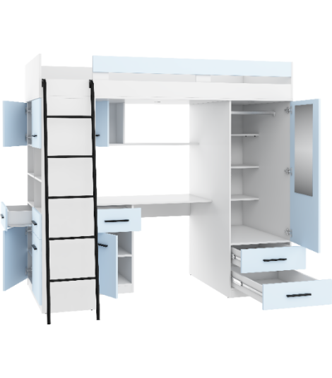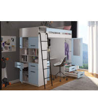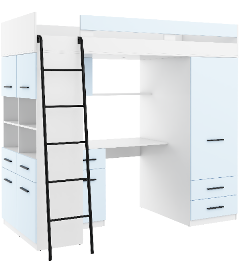 Łóżko piętrowe Level L z biurkiem i szafą Biały/Błękit