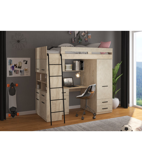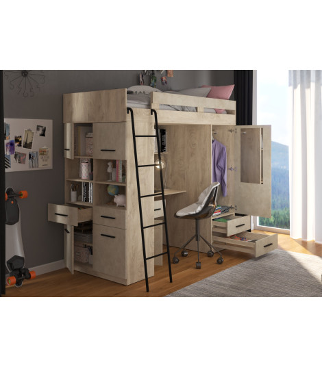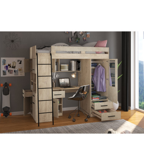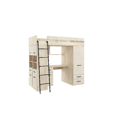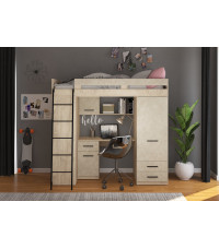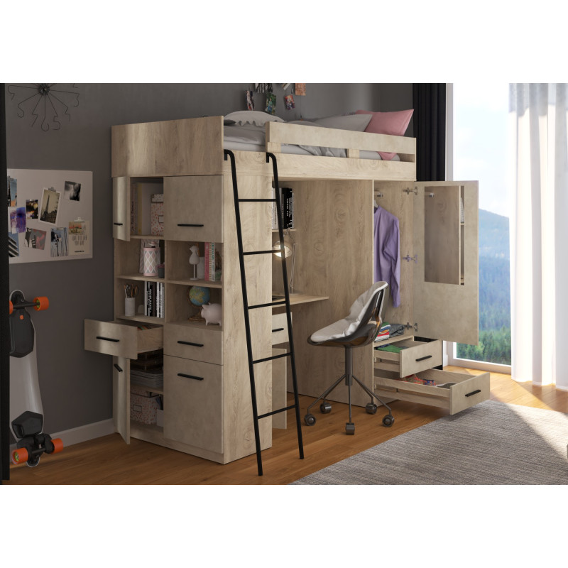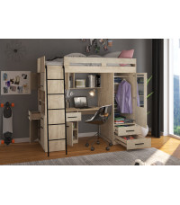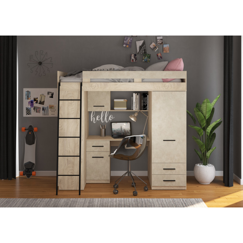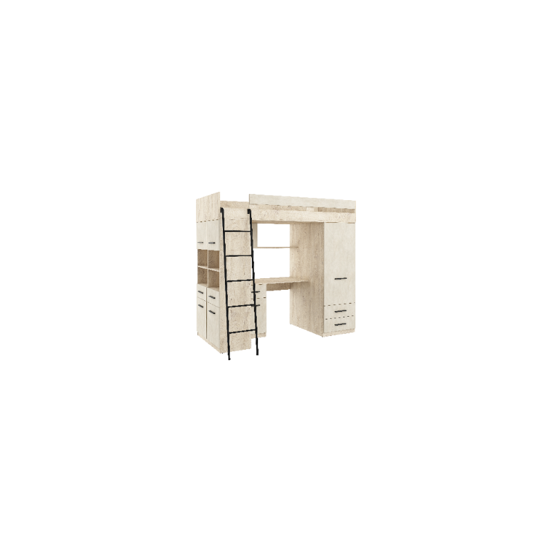 Łóżko piętrowe Level L z biurkiem i szafą Dąb Endgrain/Granada migdał