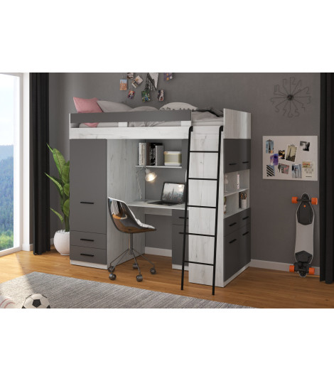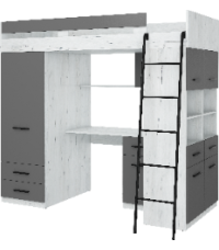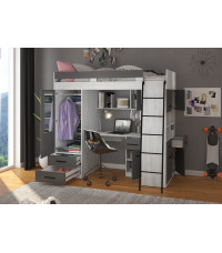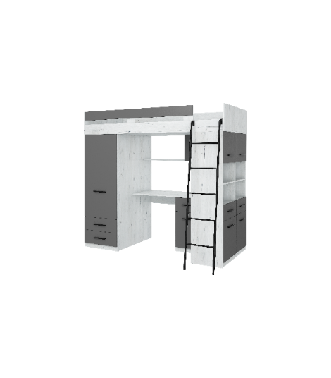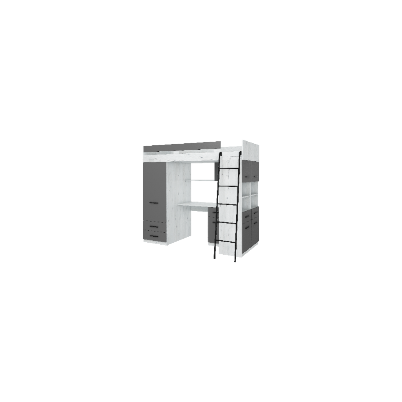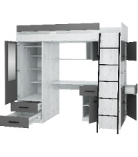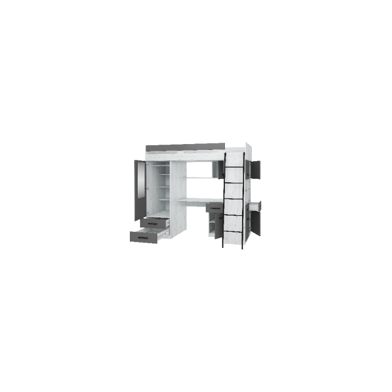 Łóżko piętrowe Level P z biurkiem i szafą Craft biały/Grafit