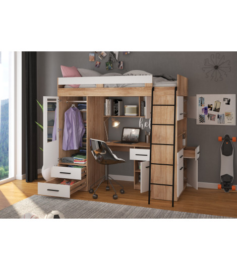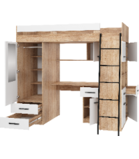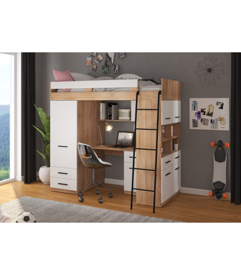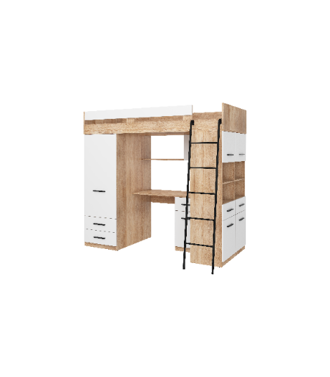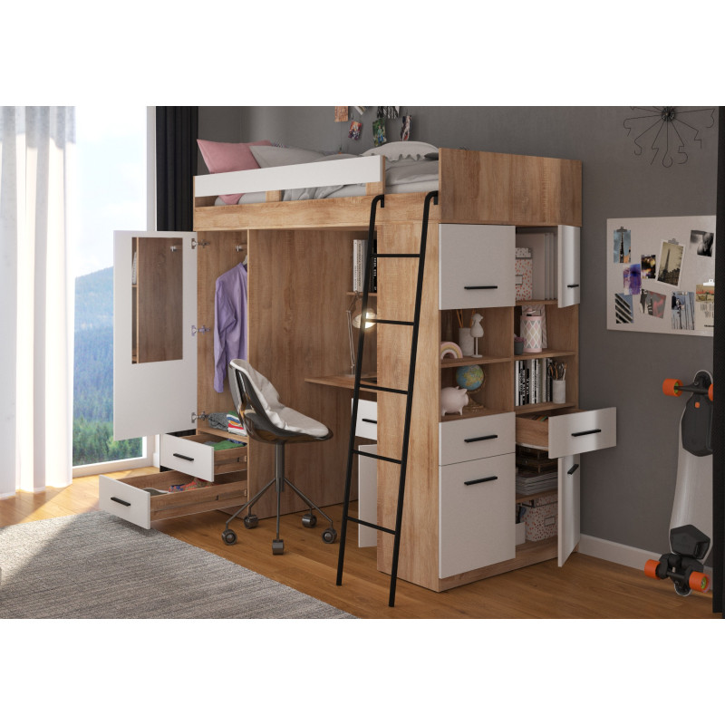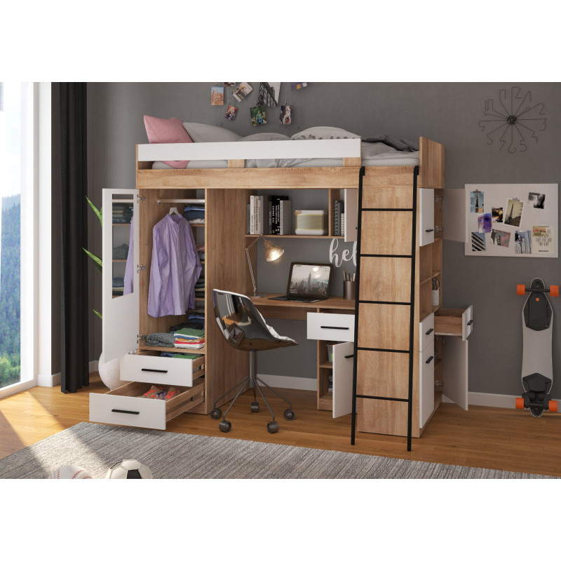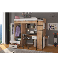 Łóżko piętrowe Level P z biurkiem i szafą Sonoma jasna/Biały