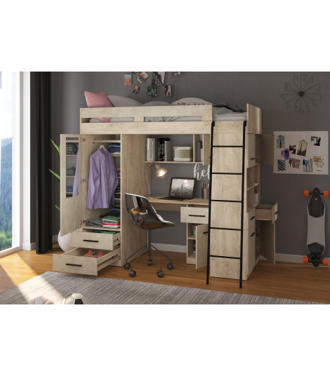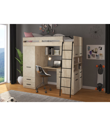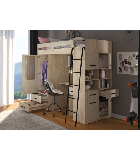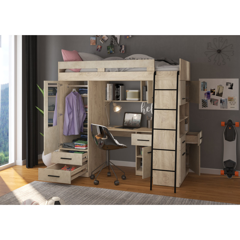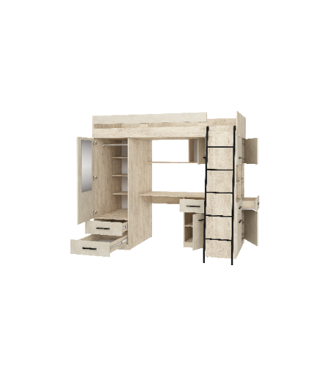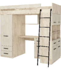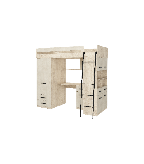 Łóżko piętrowe Level P z biurkiem i szafą Dąb Endgrain/Granada migdał