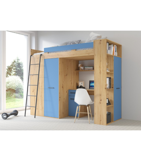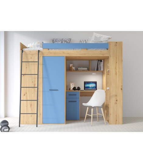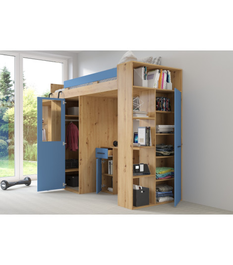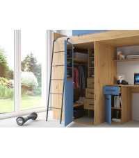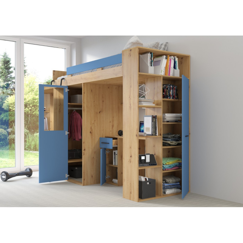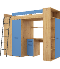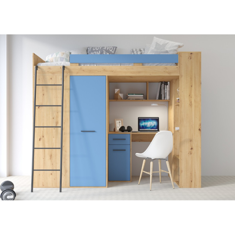 Łóżko piętrowe Verana L z biurkiem i szafą Dąb Artisan/Niebieski