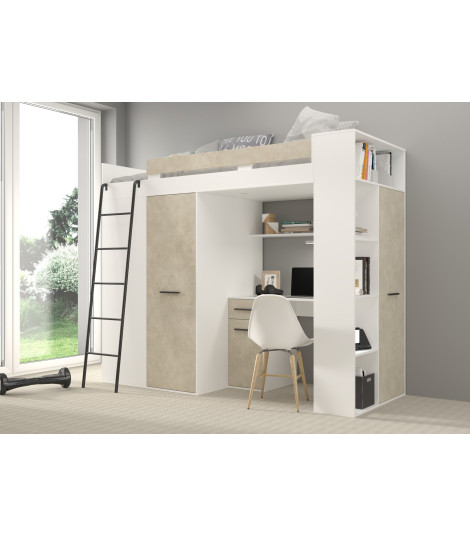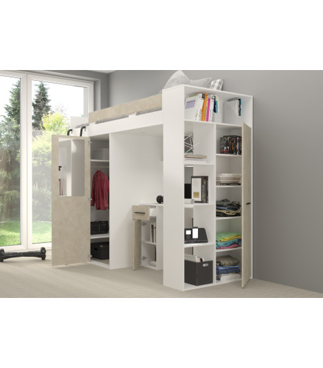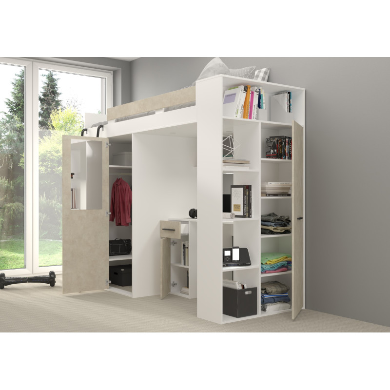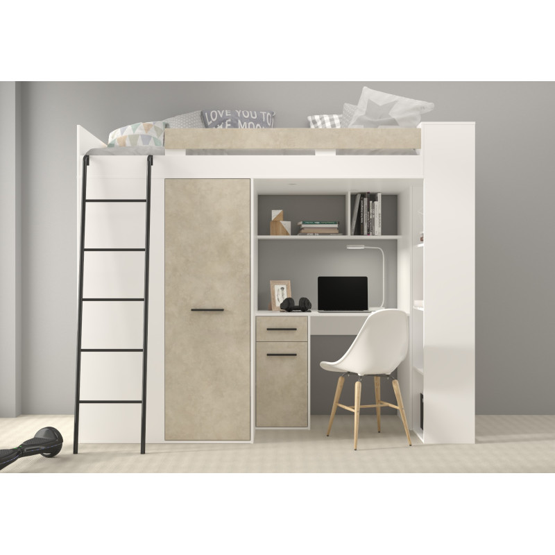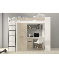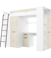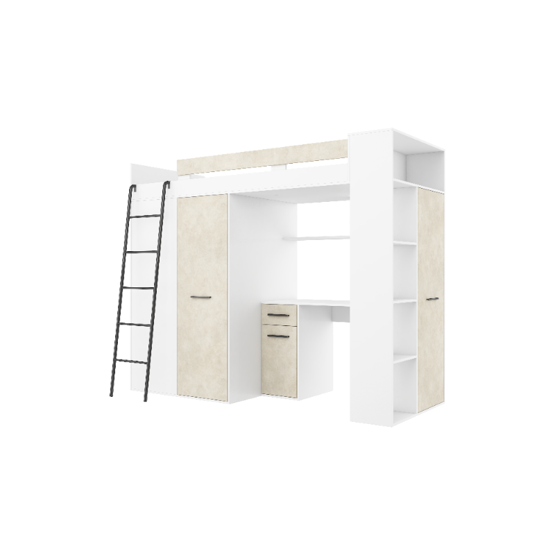 Łóżko piętrowe Verana L z biurkiem i szafą Biały/Granada migdał