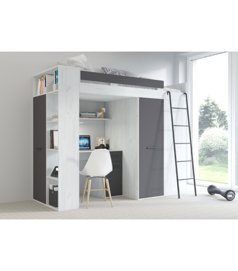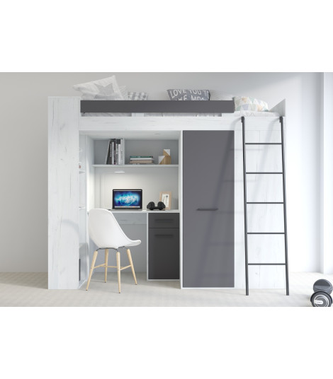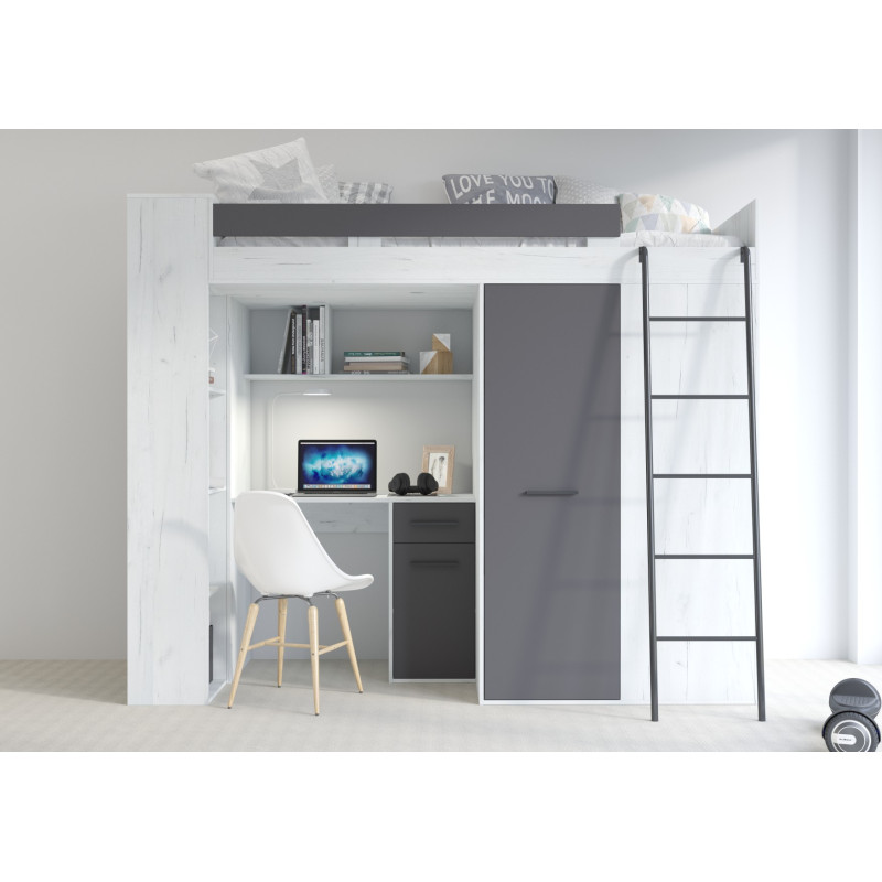 Łóżko piętrowe Verana P z biurkiem i szafą Craft biały/Grafit