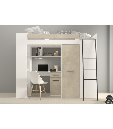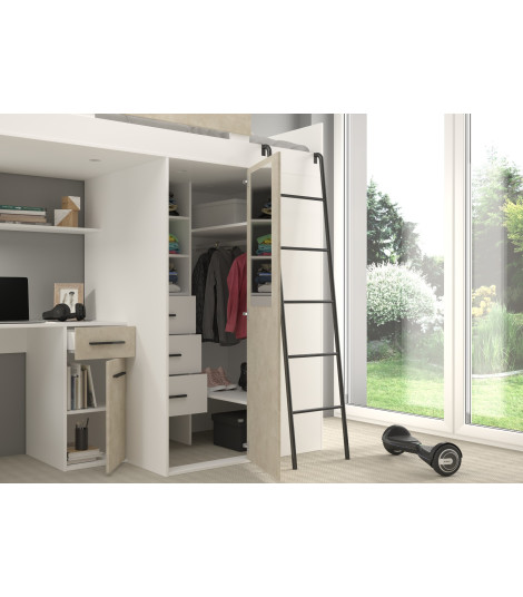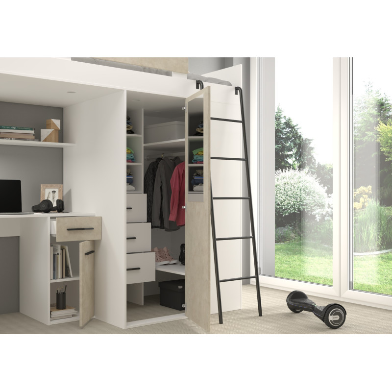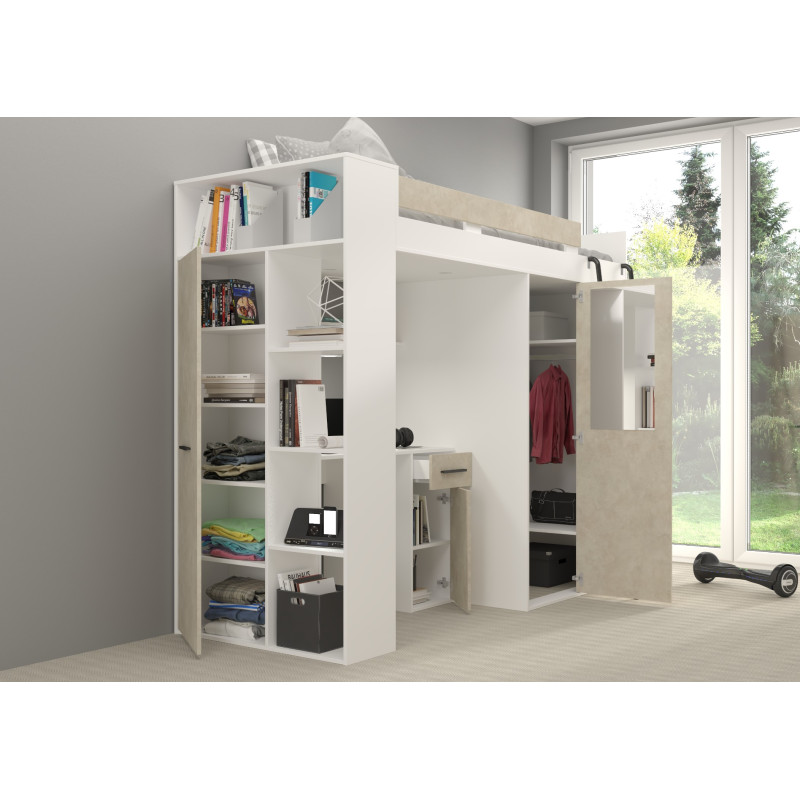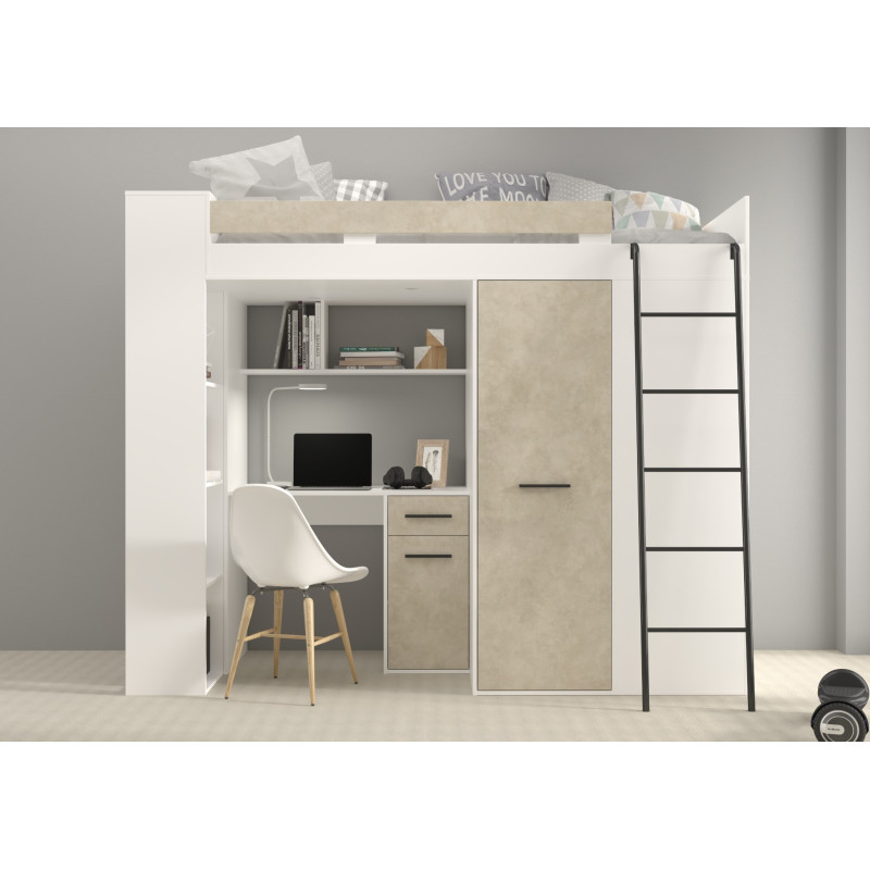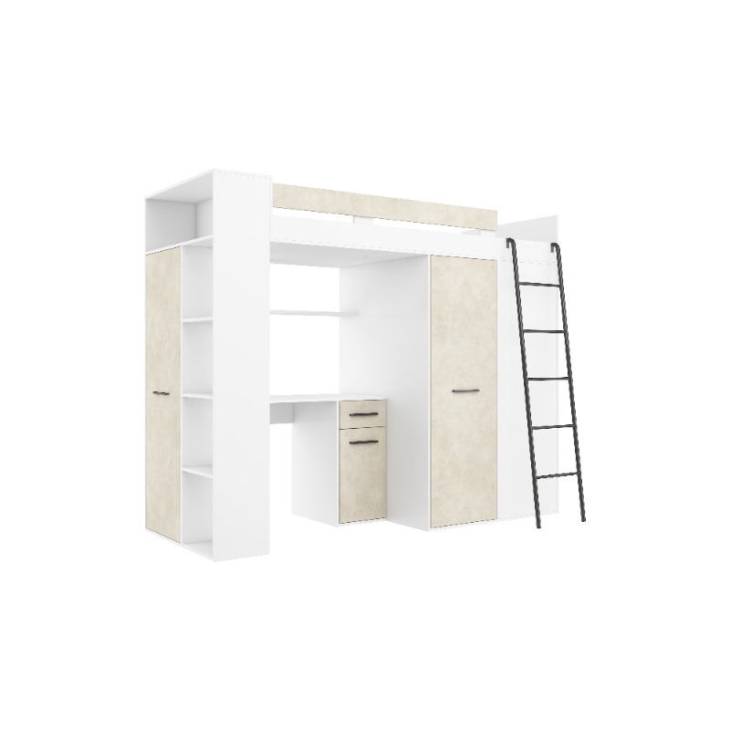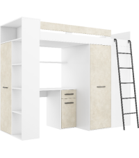 Łóżko piętrowe Verana P z biurkiem i szafą Biały/Granada migdał