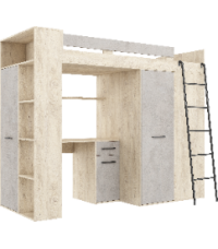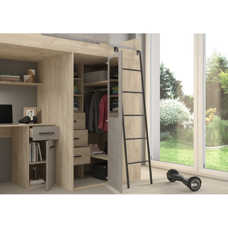 Łóżko piętrowe Verana P z biurkiem i szafą Dąb Endgrain/Beton szary