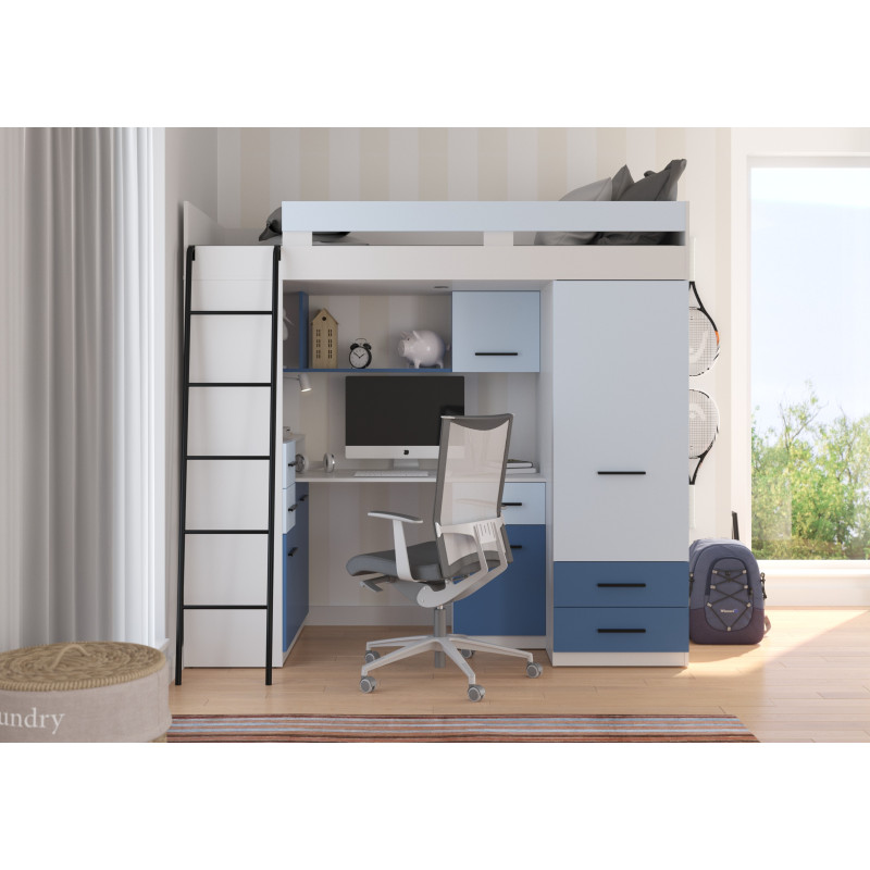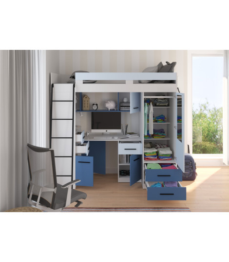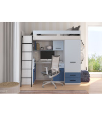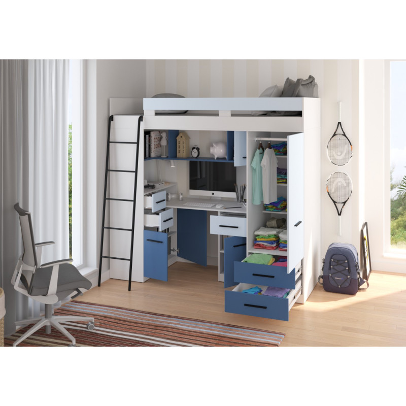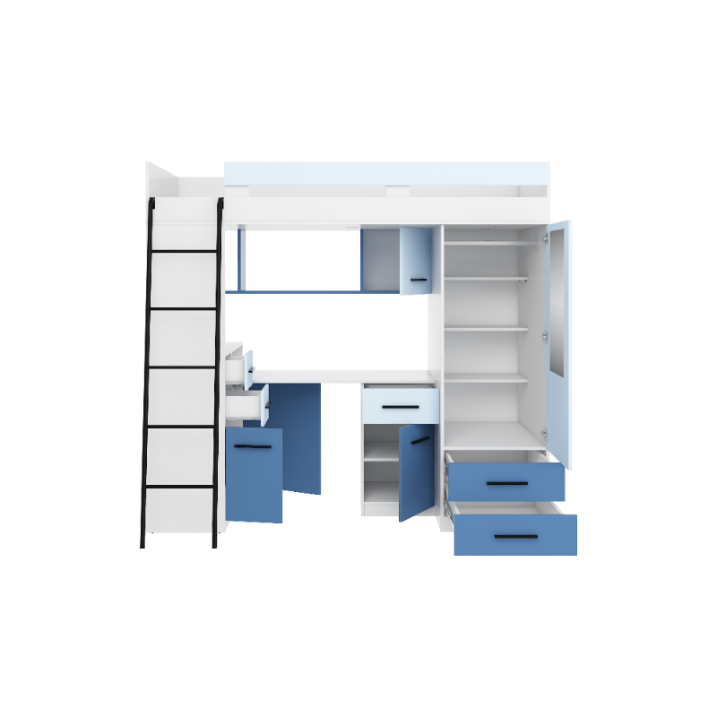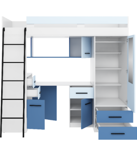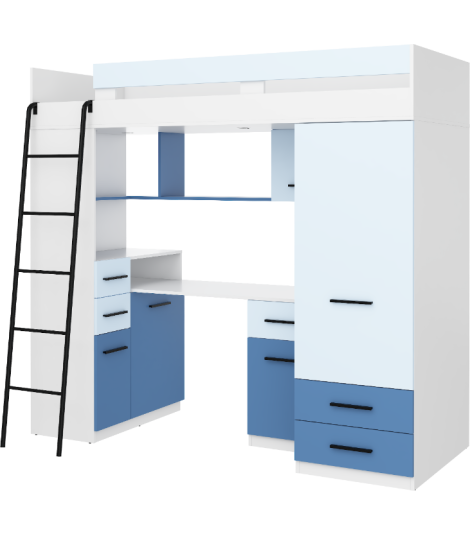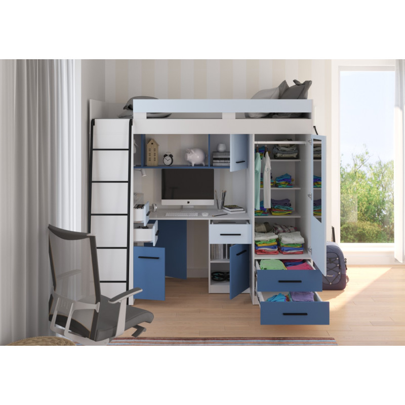 Łóżko piętrowe Smyk L z biurkiem i szafą Biały/Błękit/Niebieski