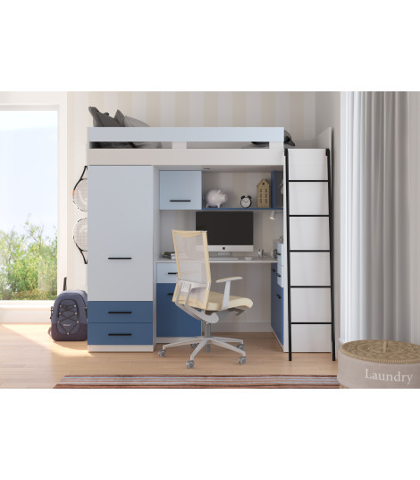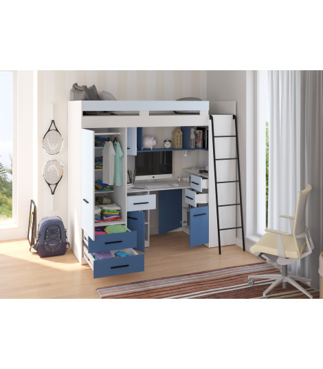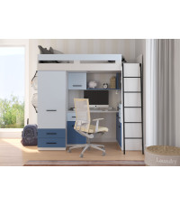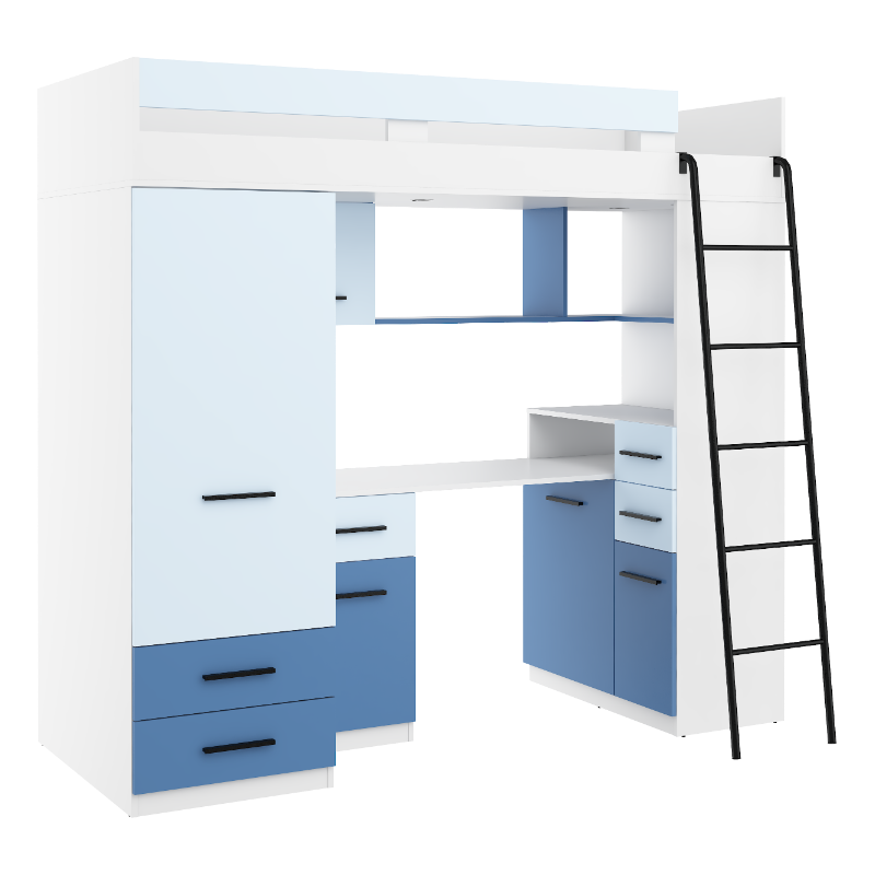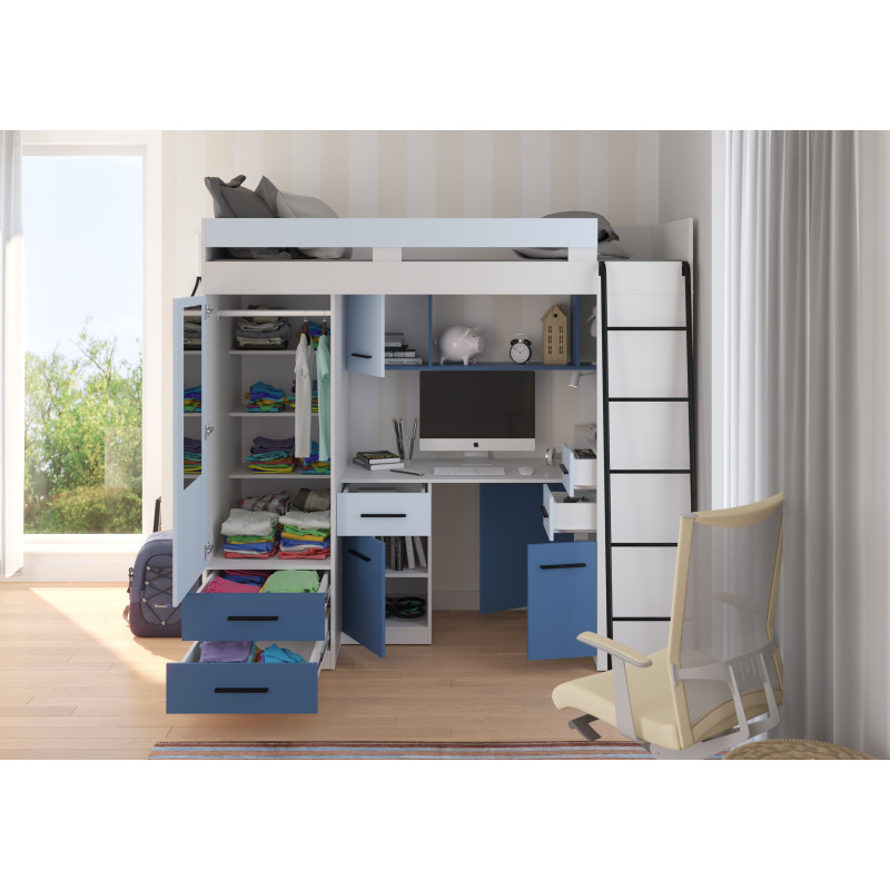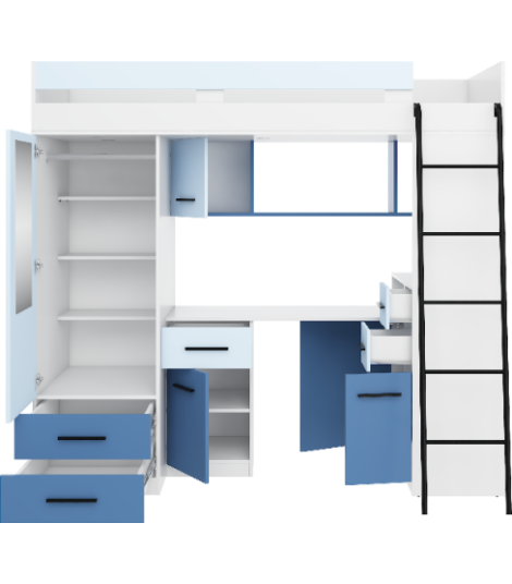 Łóżko piętrowe Smyk P z biurkiem i szafą Biały/Błękit/Niebieski
