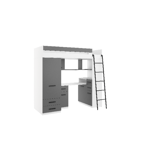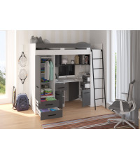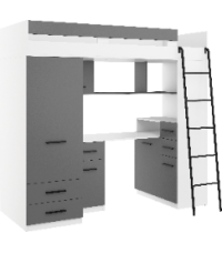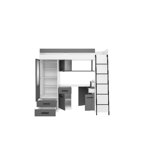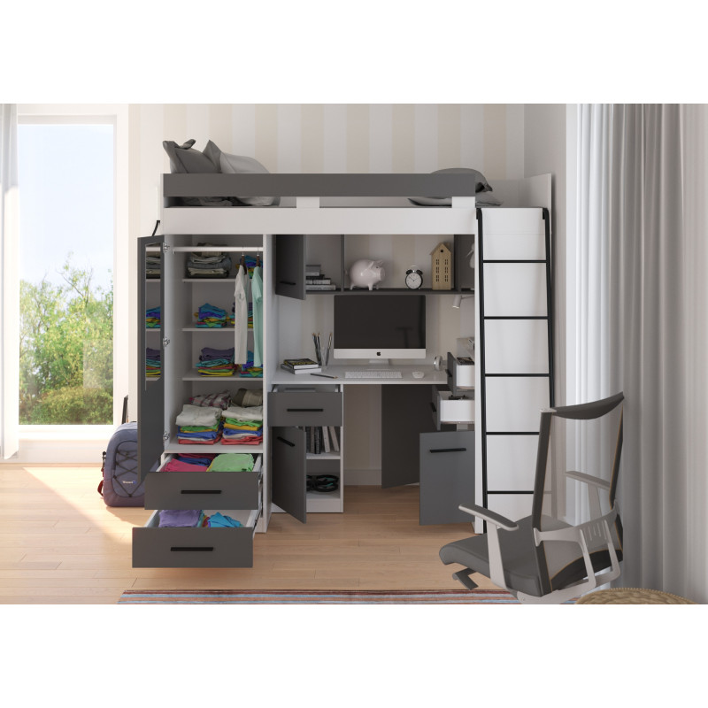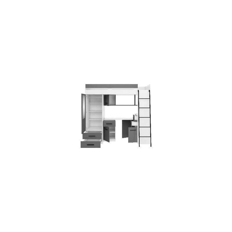 Łóżko piętrowe Smyk P z biurkiem i szafą Biały/Grafit