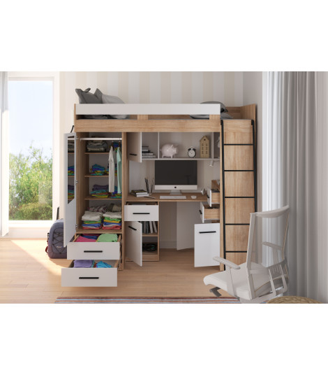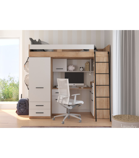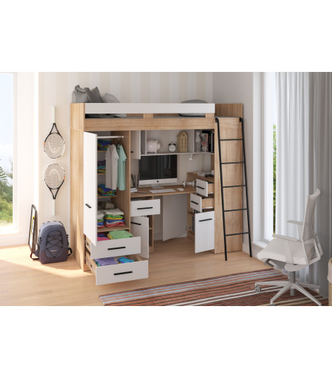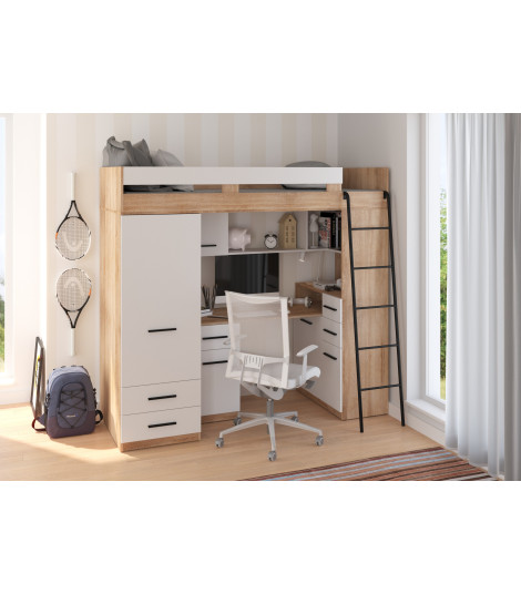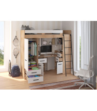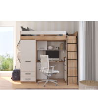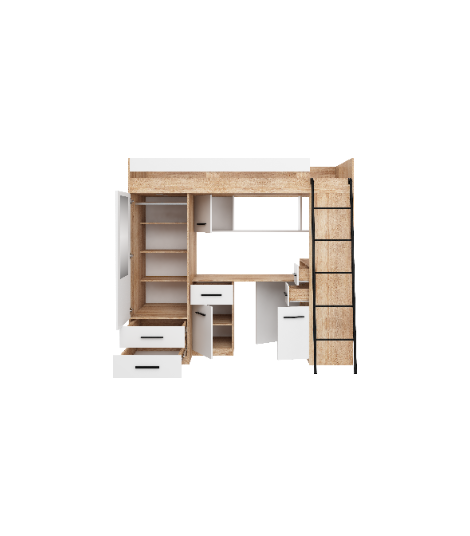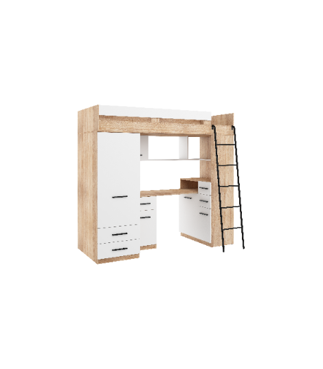 Łóżko piętrowe Smyk P z biurkiem i szafą Sonoma jasna/Biały