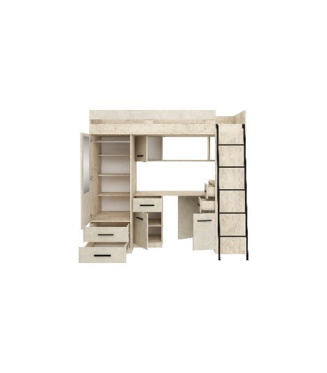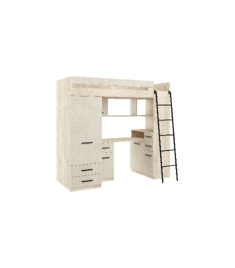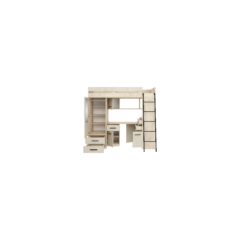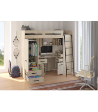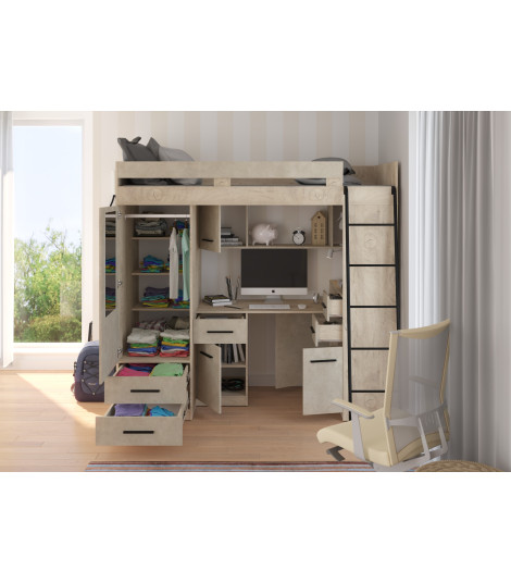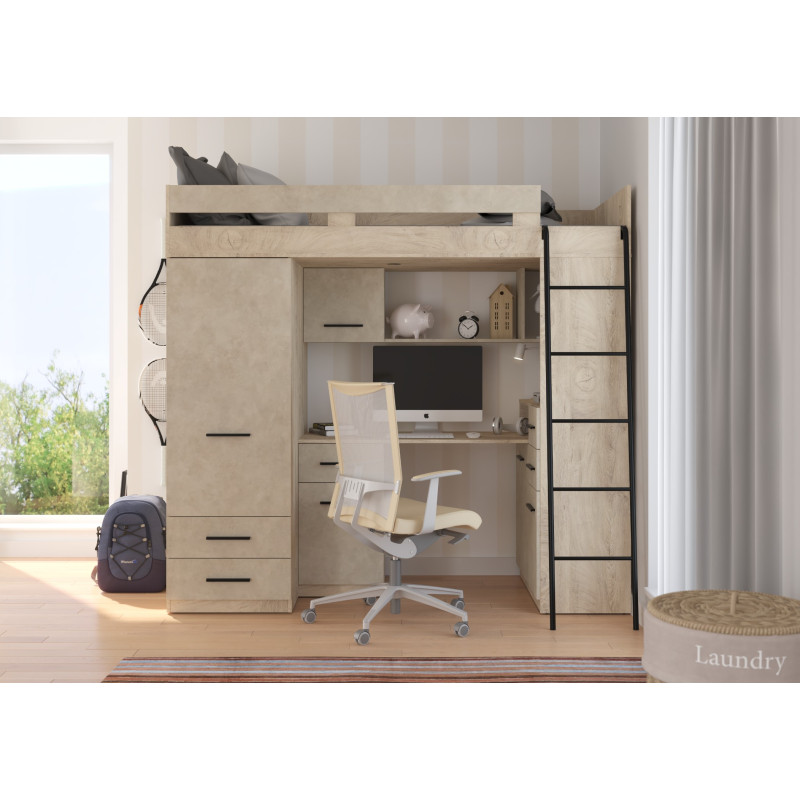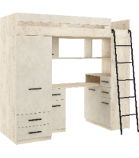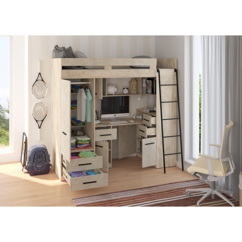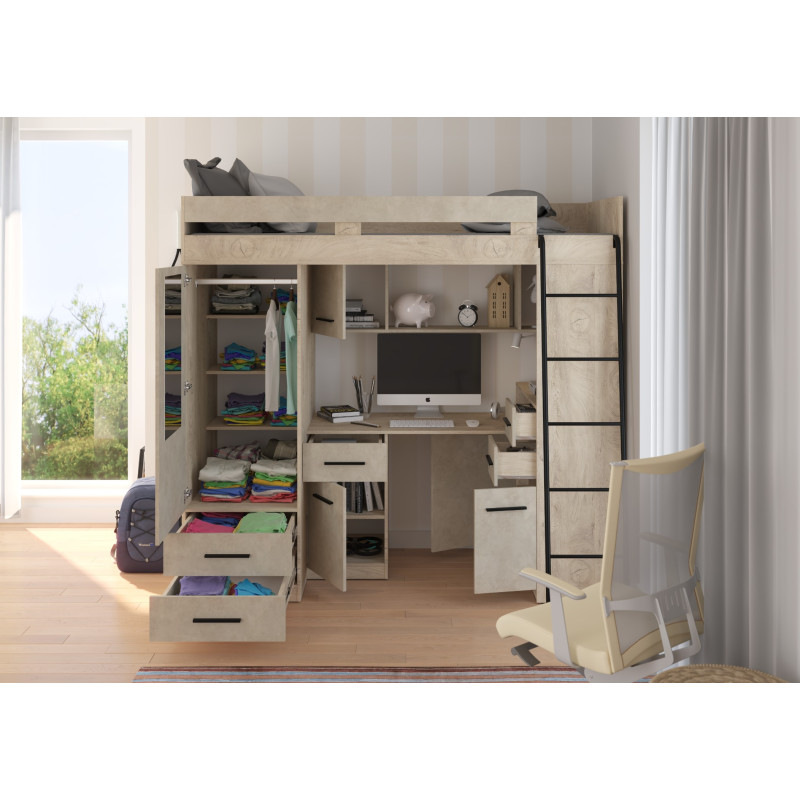 Łóżko piętrowe Smyk P z biurkiem i szafą Dąb Endgrain/Granada migdał