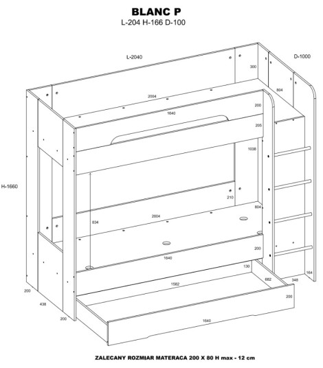 Łóżko piętrowe Blanc P z szufladą Craft biały