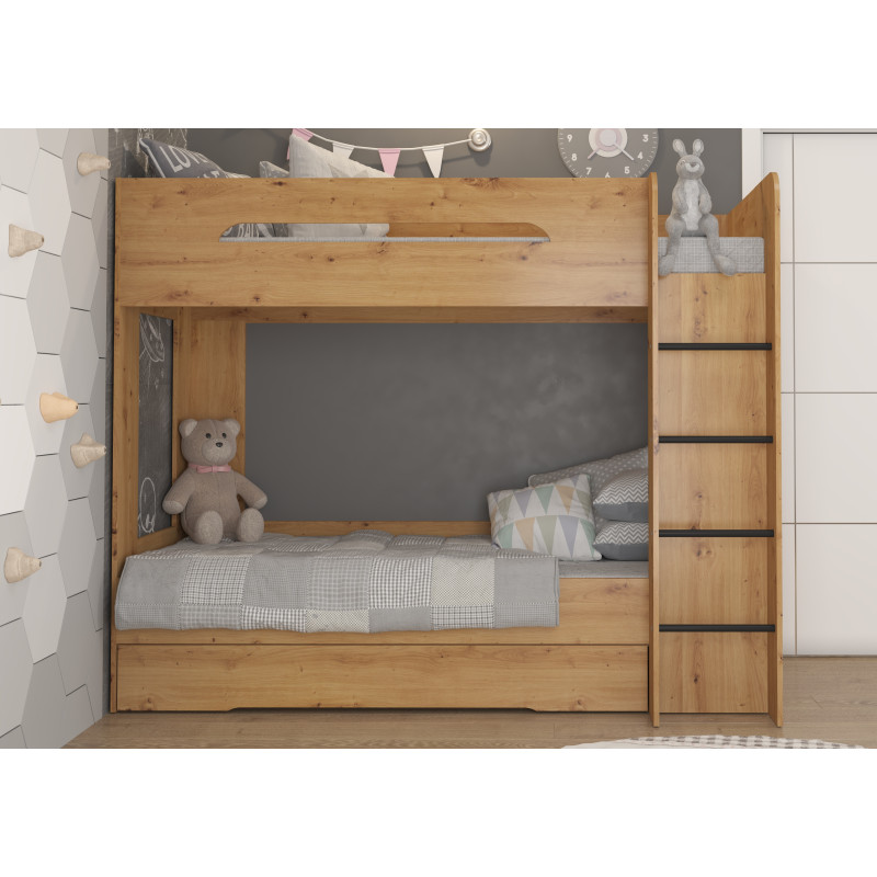 Łóżko piętrowe Blanc P z szufladą Dąb Artisan