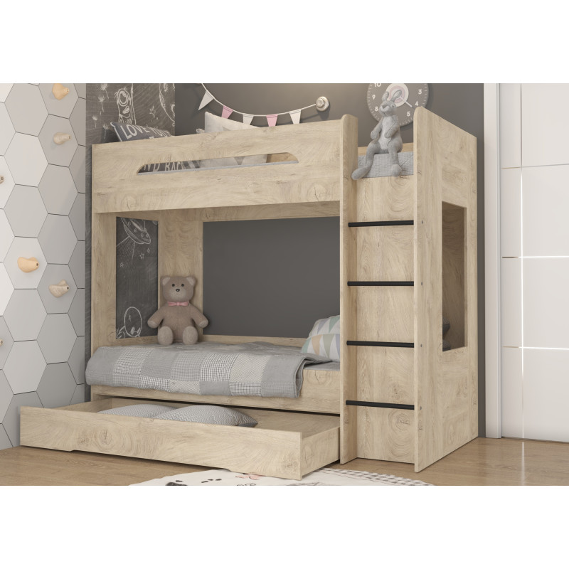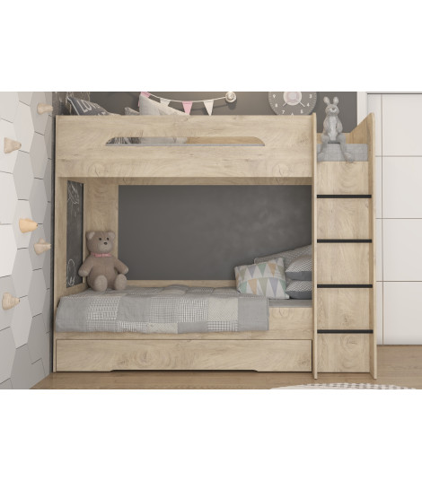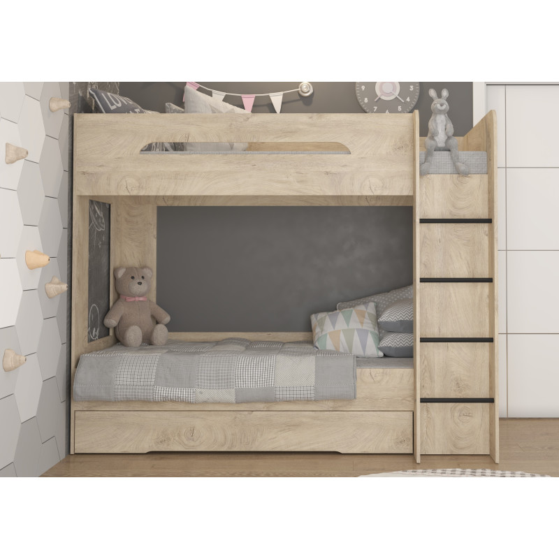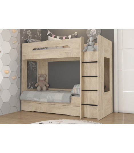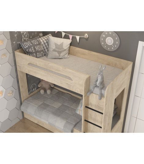 Łóżko piętrowe Blanc P z szufladą Dąb Endgrain