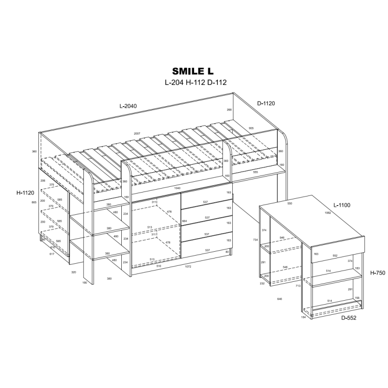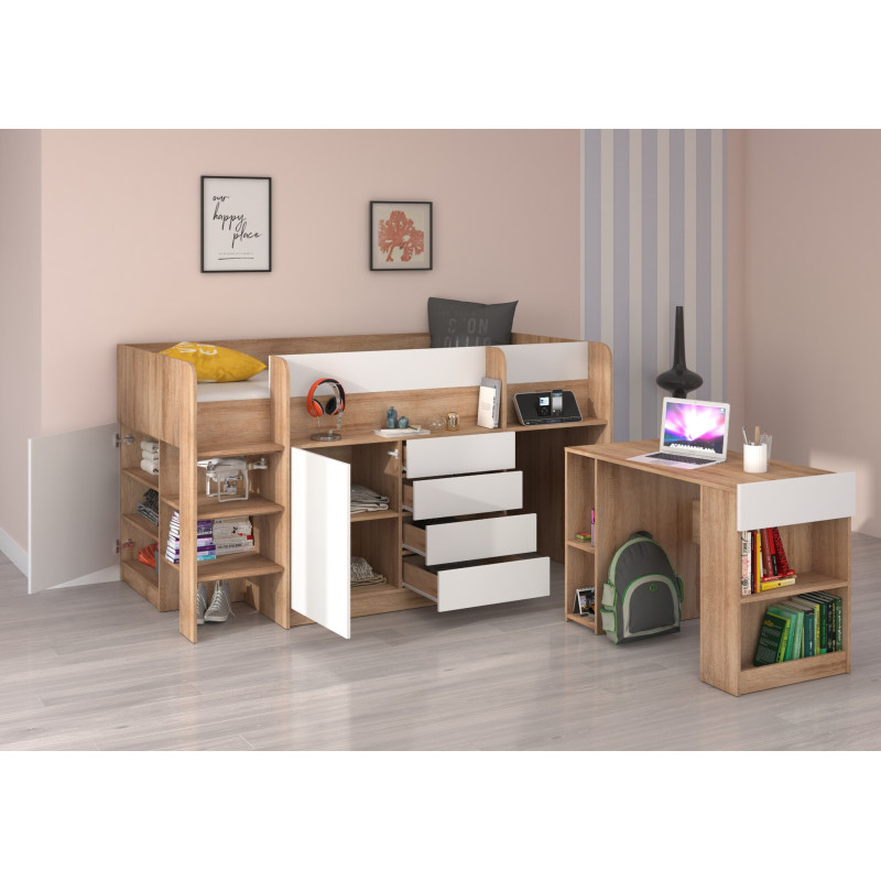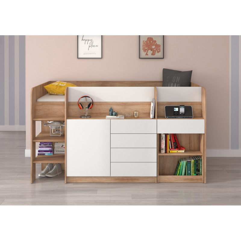 Łóżko piętrowe Smile lewe Sonoma jasna/Biały