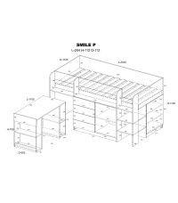 Łóżko piętrowe Smile prawe Grafit/Biały