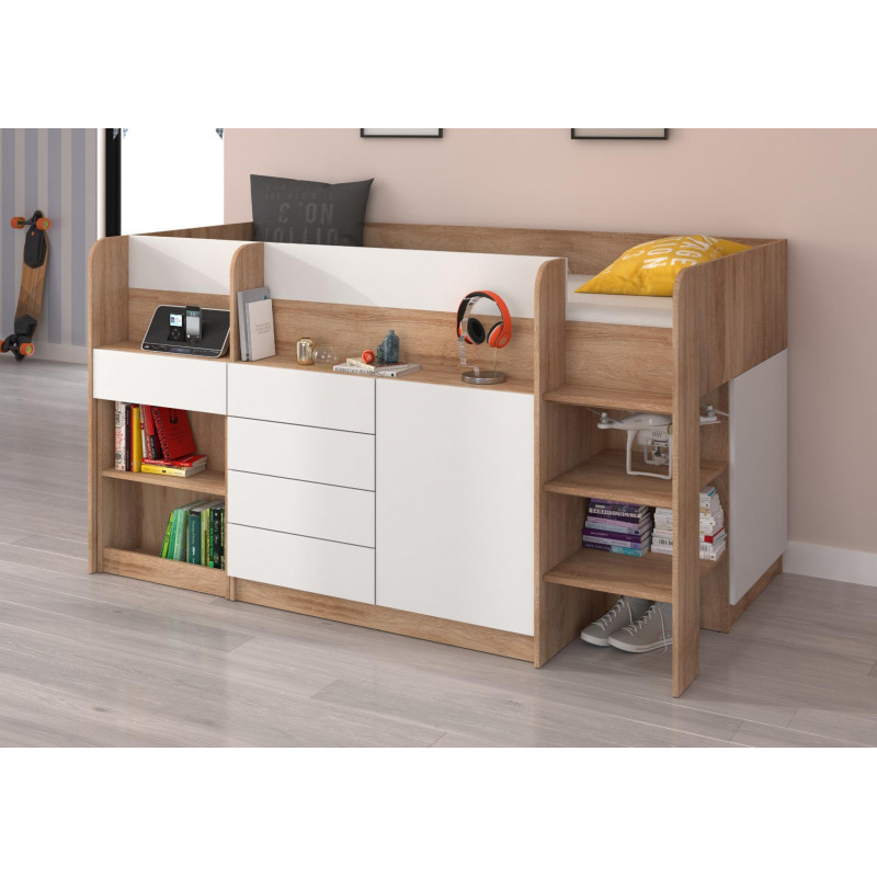 Łóżko piętrowe Smile prawe Sonoma jasna/Biały