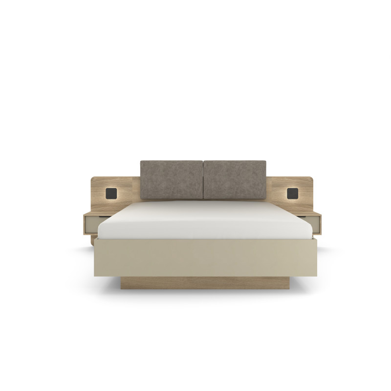 Łóżko ze stolikami i oświetleniem Letto D - Dąb Terra + Szary Kamienny