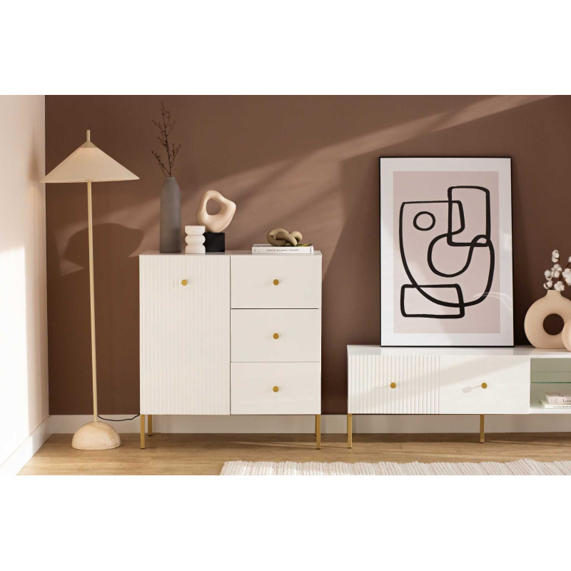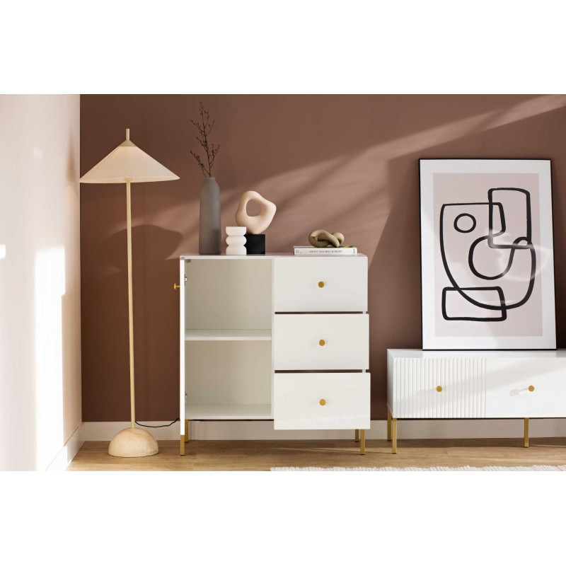 Oxo - komoda 1D3S biały/złoty