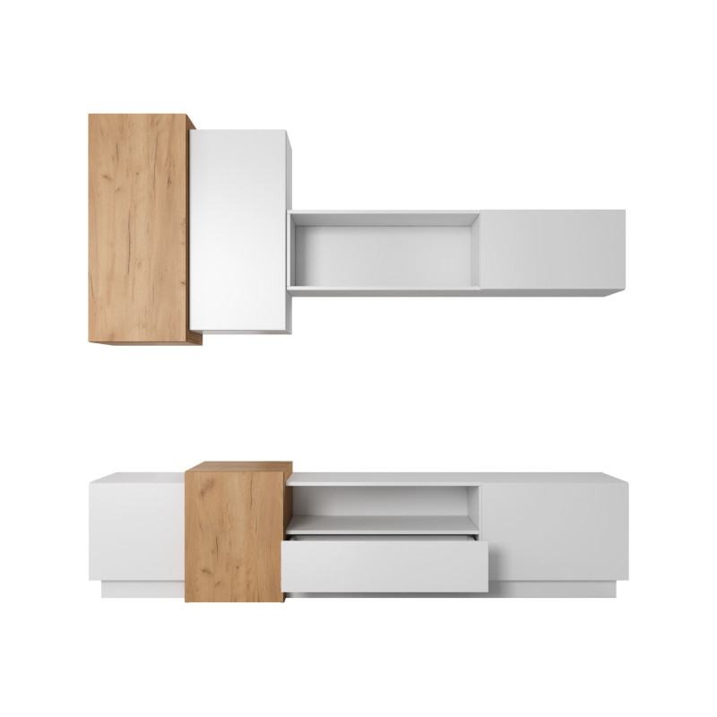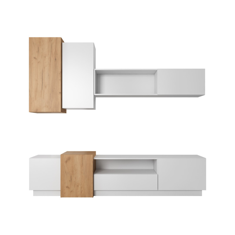 Meblościanka 3D - Biały/Dąb Craft Złoty