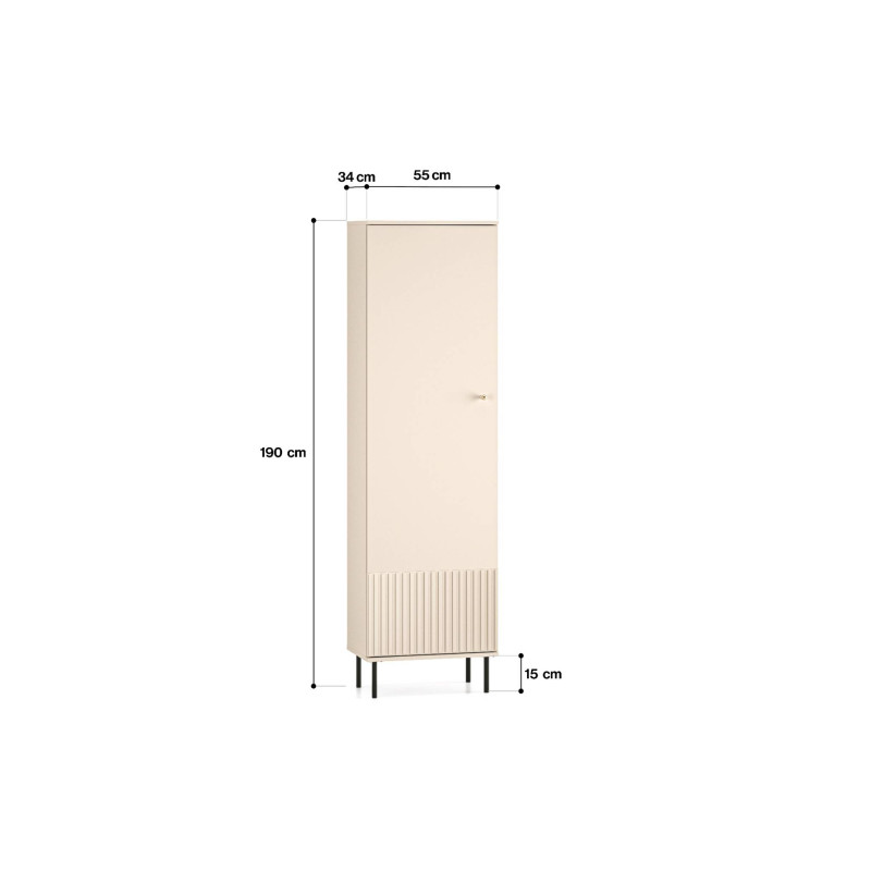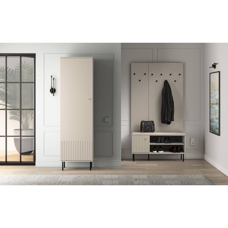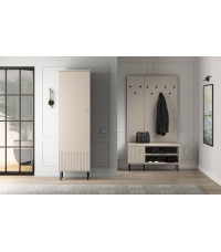 Meble z kolekcji Sophie to idealny wybór do współczesnego przedpokoju. Dzięki systemowi złożonemu z jedenastu brył urządzisz swoje wymarzone wnętrze. Kaszmirowy dekor to niebanalny i ponadczasowy kolor, nazywany nowym białym. Frezowane fronty MDF podkreślają wyrafinowanie i elegancję całej kolekcji. Dyskretne czarne nóżki dodają bryłom efektownej lekkości. Kropką nad i, dodatkowo budującą estetykę wszystkich mebli Sophie są uchwyty ze szczotkowanego metalu, w złotym wybarwieniu.