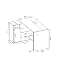 W przypadku tego biurka docenisz przemyślane rozwiązania: specjalny wysuwany uchwyt na klawiaturę, trzy otwarte półki oraz pojemną szufladę na ważne dokumenty czy inne przedmioty.