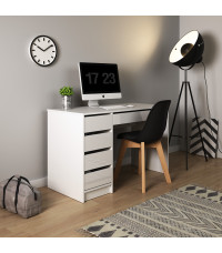 Biurko/toaletka Ada w kolorze białego połysku to elegancki mebel, który łączy funkcjonalność z nowoczesnym stylem. Jego minimalistyczna forma, z czterema szufladami bocznymi i jedną podłużną pod blatem, zapewnia doskonałą organizację przestrzeni. Z łatwością przekształcisz je w toaletkę, dodając lustro z tej samej serii, tworząc efektowny zestaw do sypialni czy garderoby.