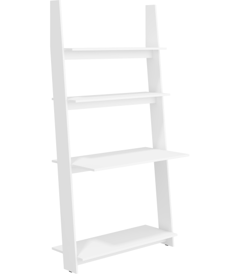Biurko RAC-01 ma wymiary: szerokość 100 cm, wysokość 196 cm oraz głębokość 50 cm. Mebel wyposażony jest w duży blat roboczy, który zapewnia komfortową przestrzeń do nauki lub pracy, oraz trzy funkcjonalne półki do przechowywania dokumentów, książek czy akcesoriów biurowych. Wykonany został z wysokiej jakości płyty laminowanej, co zapewnia trwałość i łatwość w utrzymaniu czystości. Biała kolorystyka nadaje mu nowoczesny, uniwersalny charakter i optycznie rozjaśnia wnętrze. Kolekcja Rack wyróżnia się oryginalnym wzornictwem, które sprawia, że mebel pasuje zarówno do minimalistycznych, jak i bardziej klasycznych aranżacji.