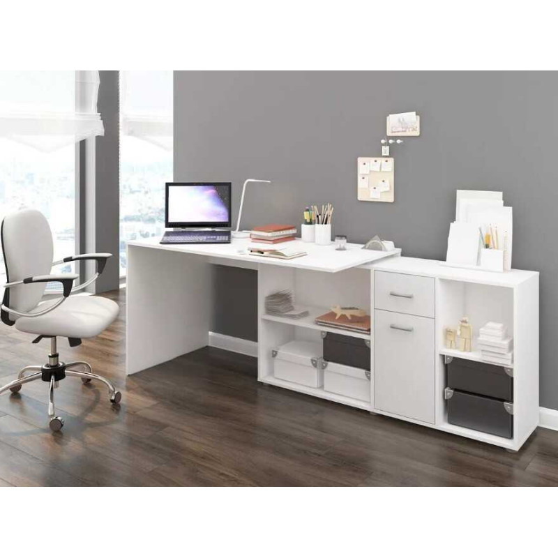 Biurko z szafkami Beat P - biały / biały połysk