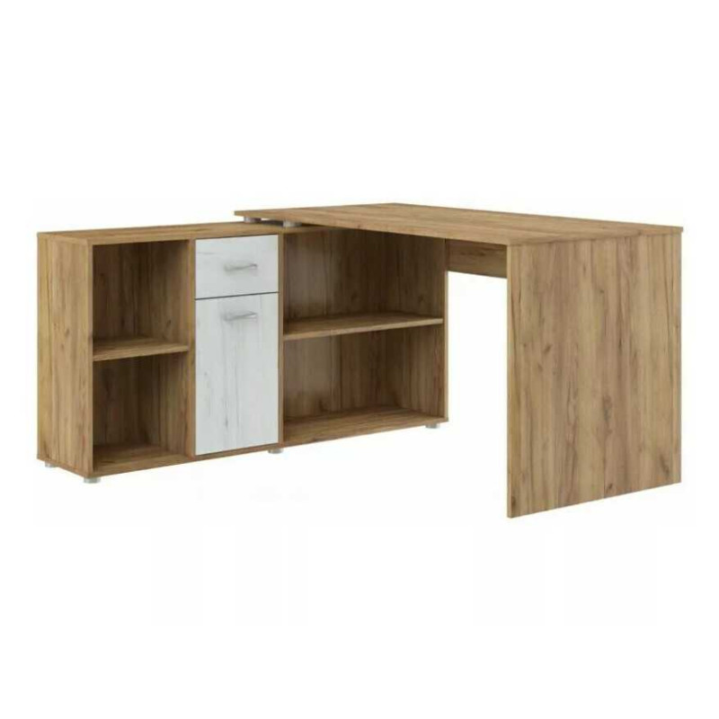 Stwórz wygodne miejsce pracy z narożnym biurkiem Beat. Mebel oferuje przestronną powierzchnię roboczą, na której oprócz komputera zmieścisz także niezbędne urządzenia i materiały biurowe. Zamykana szafka, szuflada oraz półki umożliwią przechowywanie ważnych dokumentów i drobiazgów.