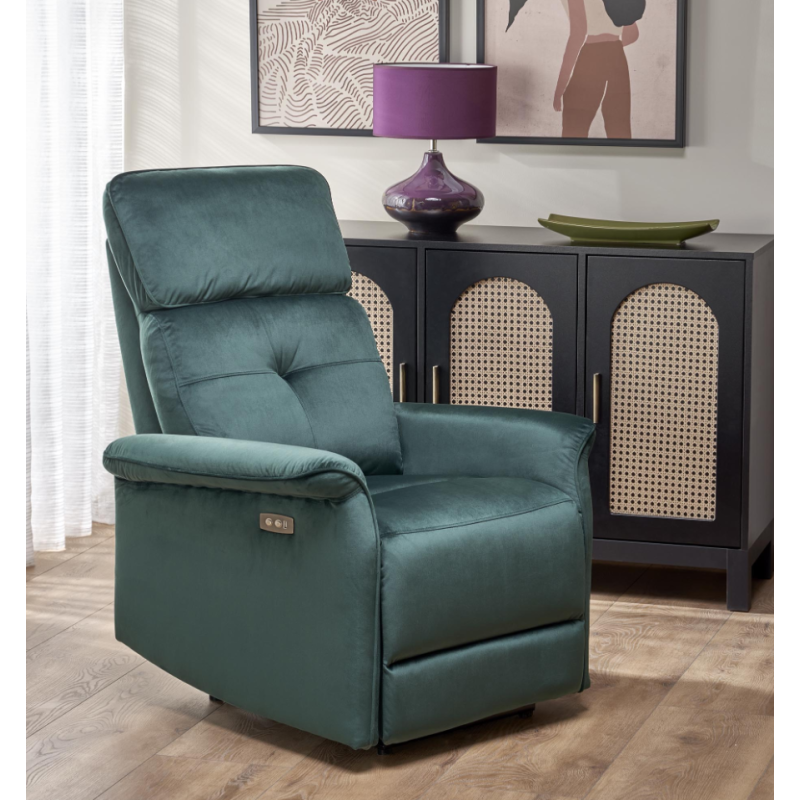 Fotel z funkcją elektrycznego rozkładania Semir /gniazdo USB, ciemny zielony (2p1szt)